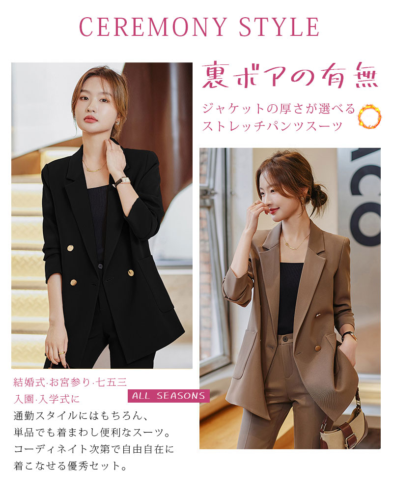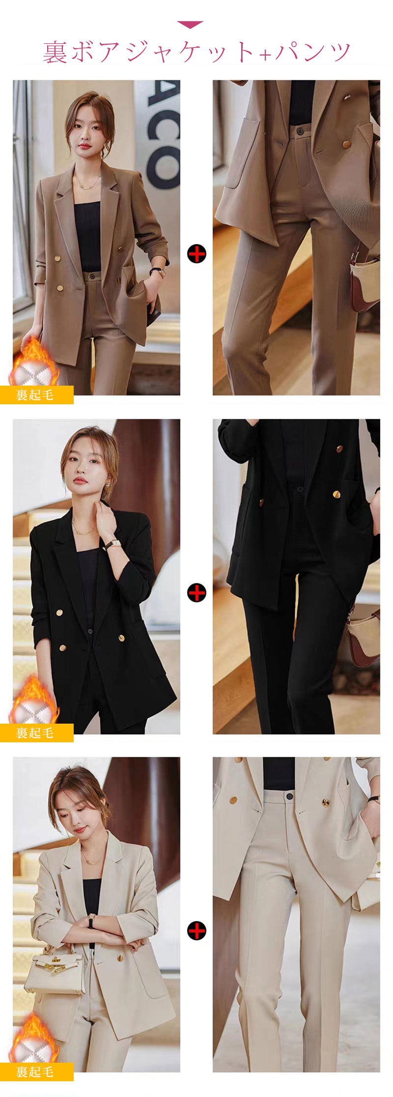ジャケット裏仕様選択可 パンツスーツ スーツ セットアップ ワンピーススーツ 続々登場 ブラック ベージュ コーヒー色 ジャケット裏ボアなし ジャケット裏ボアあり