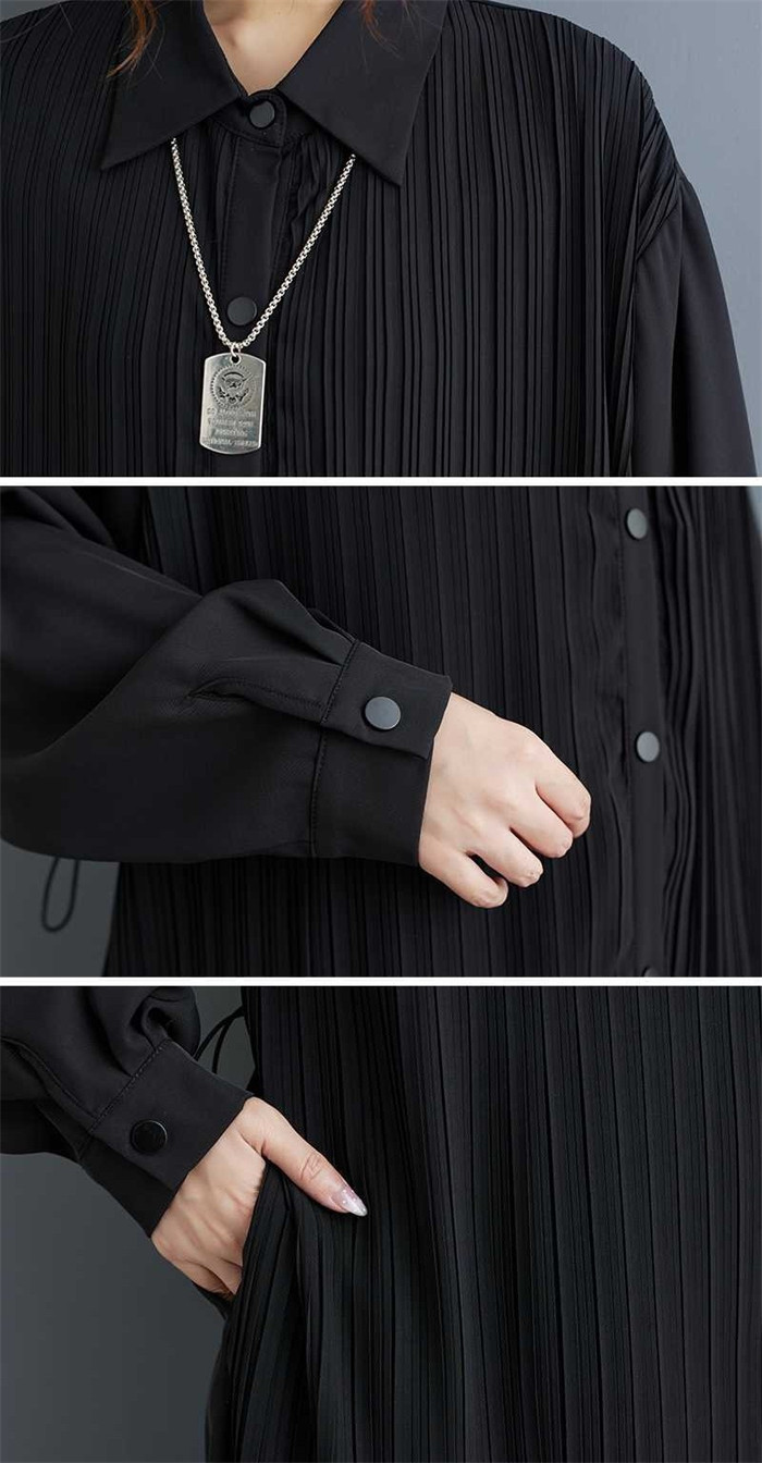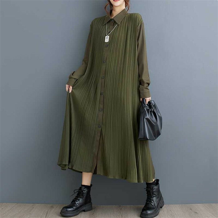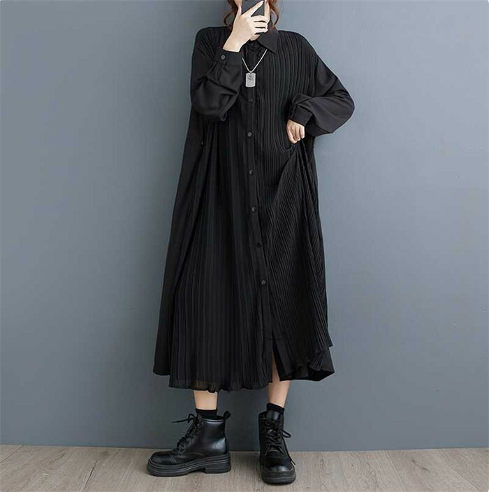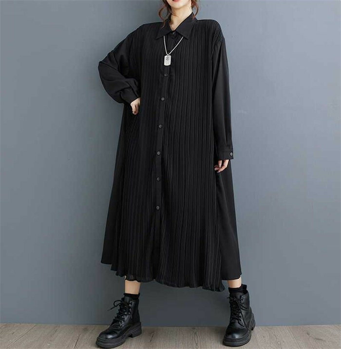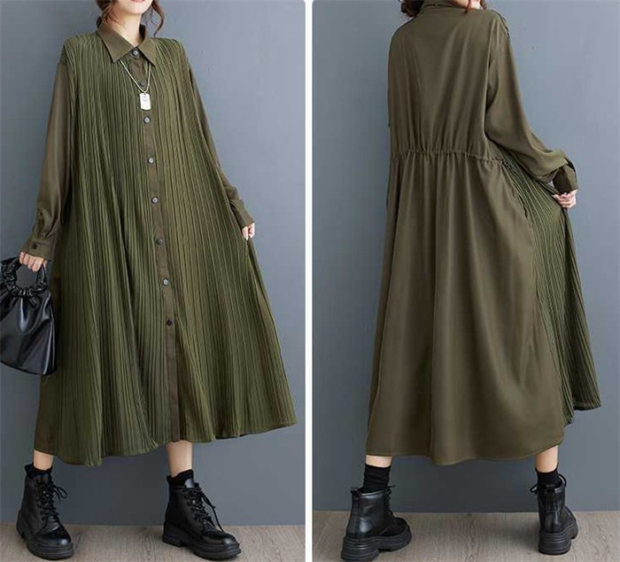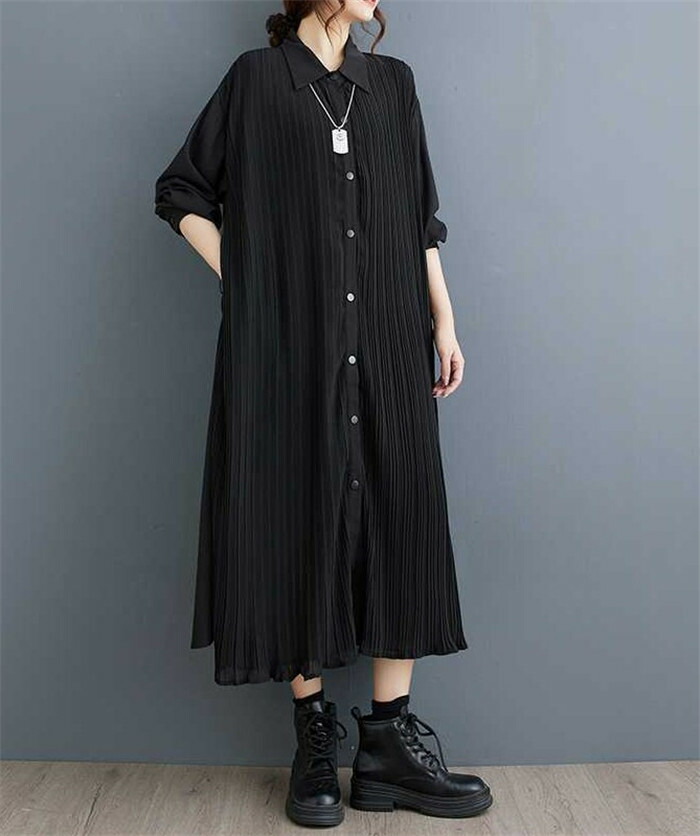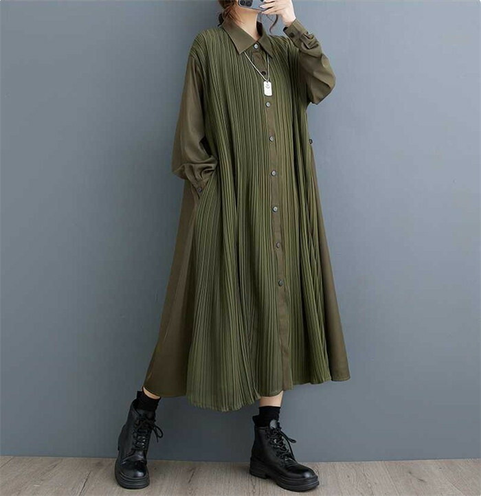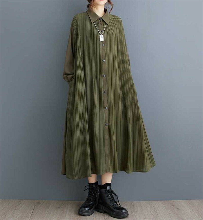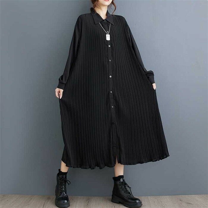 シャツワンピース 秋 春 長袖 ロング 黒 カーキ