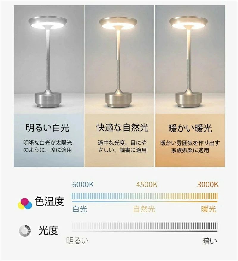 テーブルランプ コードレス USB充電 ブラック ゴールド シルバー