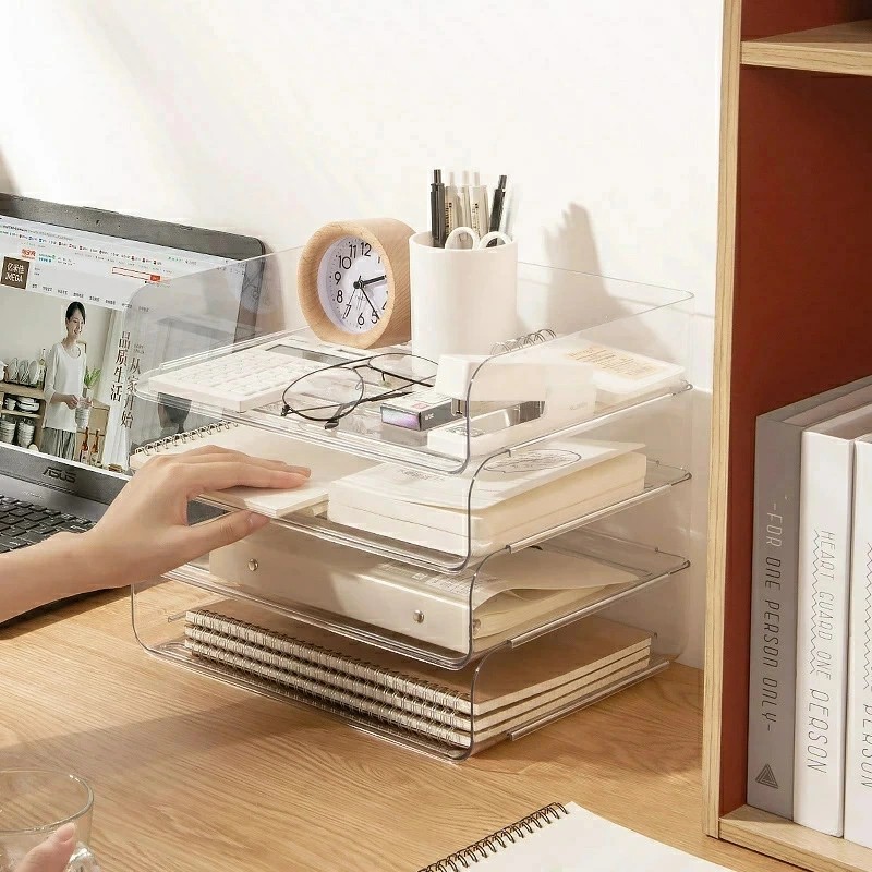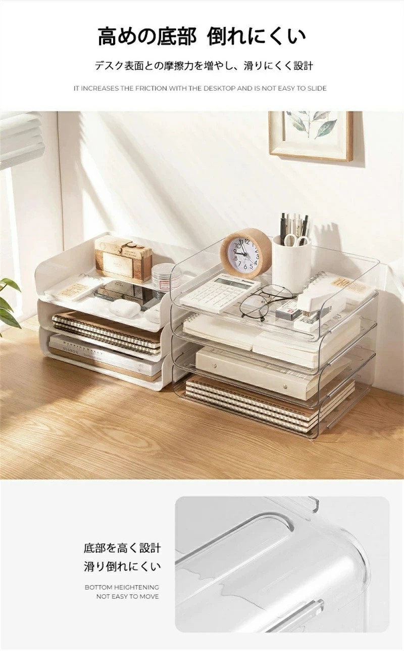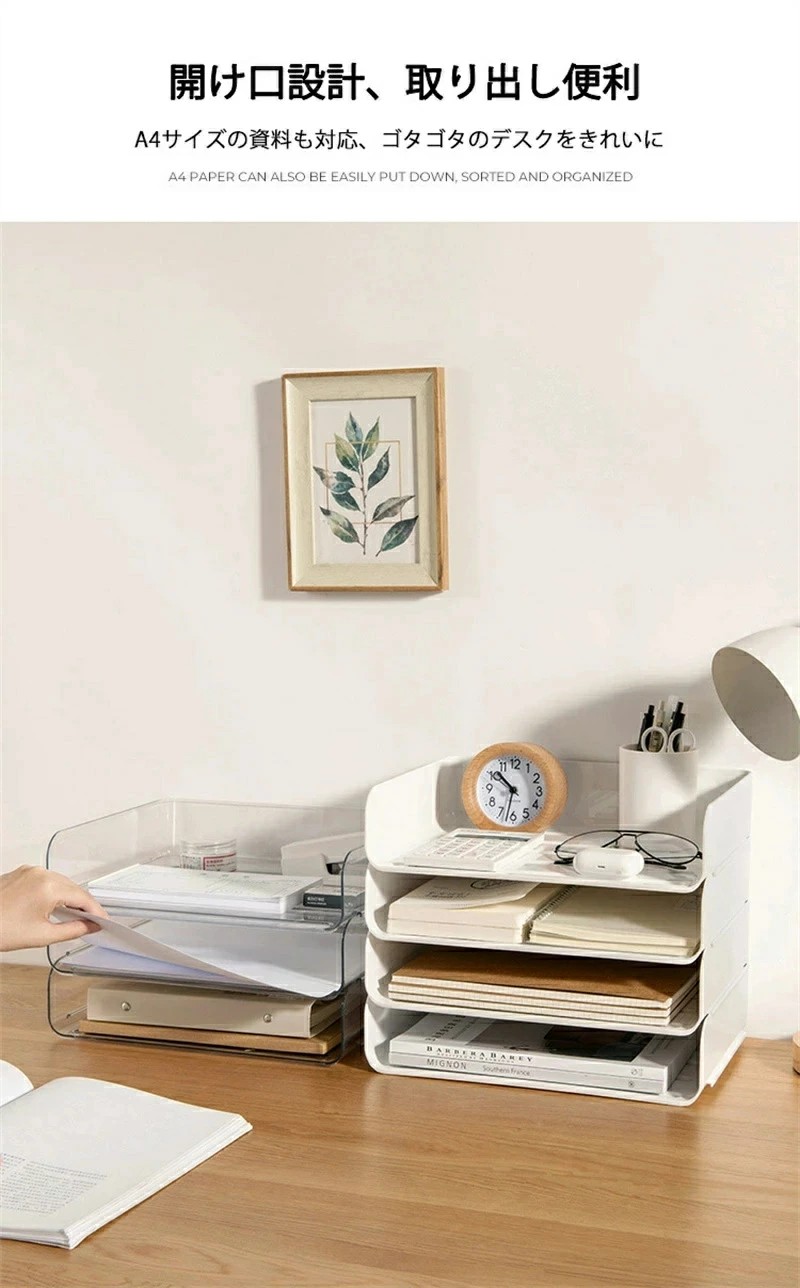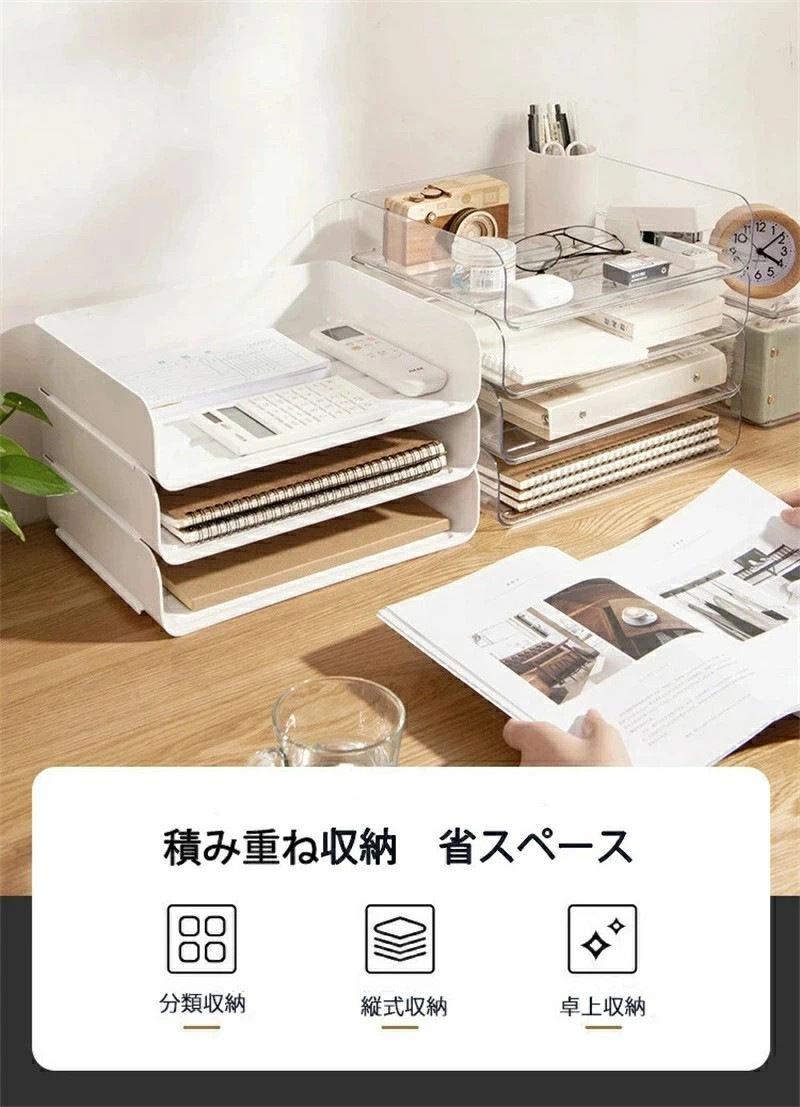 レタートレー A4 4段 透明 卓上 文房具 事務用品 机上収納 整理用品 レターケース デスクトレー 続々入荷中 透明 白