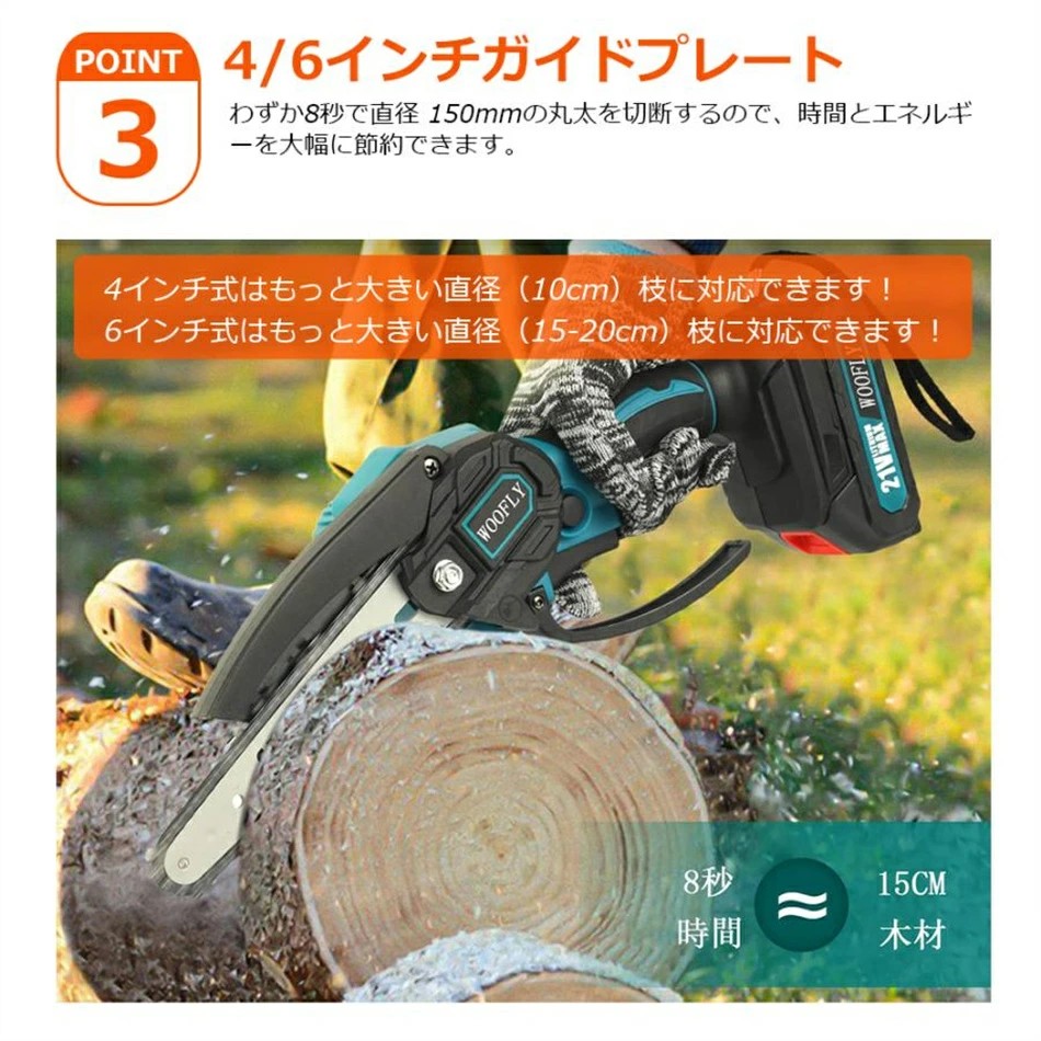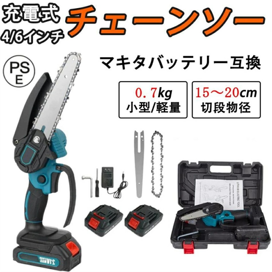 チェーンソー 充電式 コードレス 電動 4インチ 6インチ 本体のみ 本体+1.5Ah電池*1+充電器*1 本体+1.5Ah電池*2+充電器*1 本体+3.0Ah電池*1+充電器*1 本体+3.0Ah電池*2+充電器*1