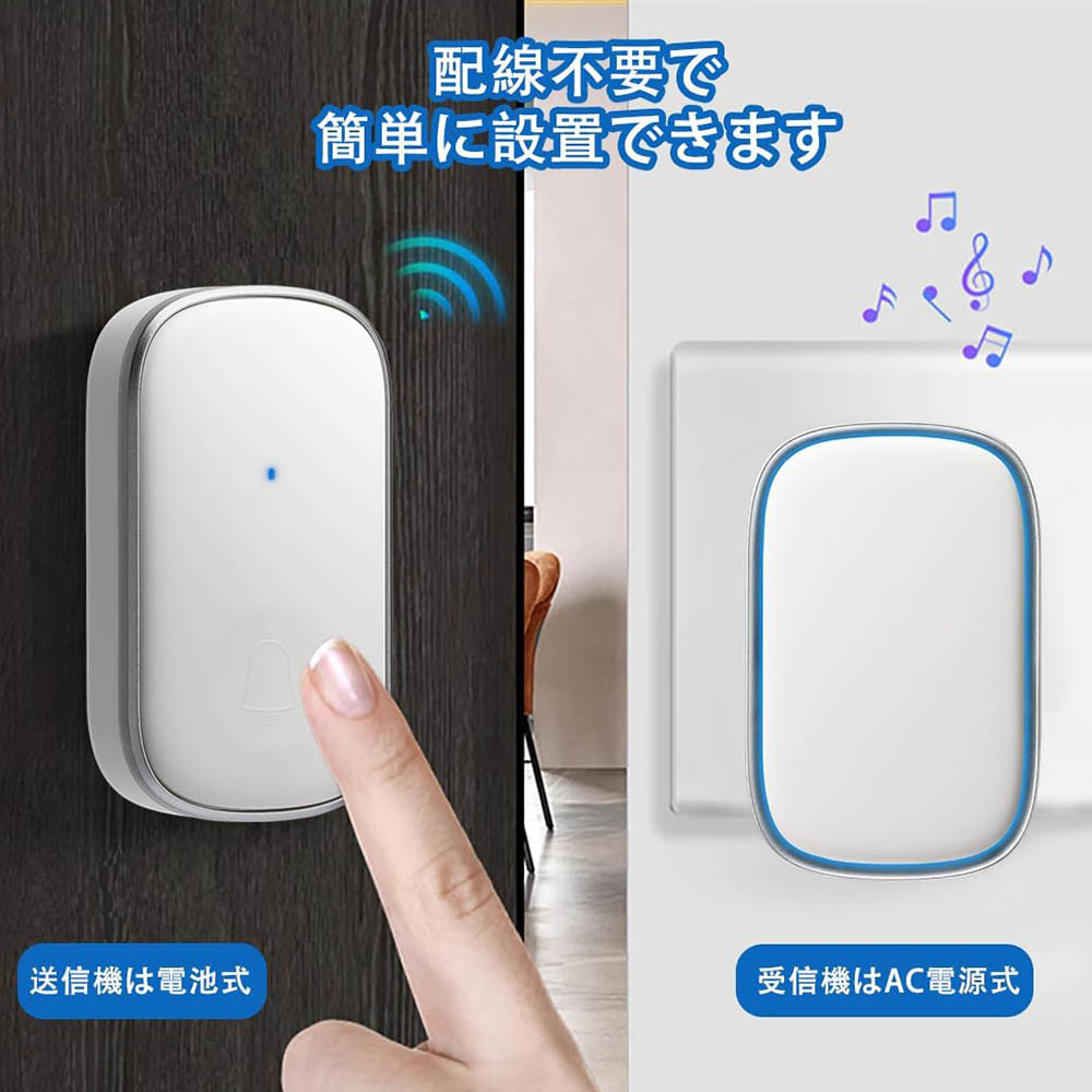 電池式 ワイヤレスチャイム チャイム 呼び出しベル 工事不要 介護 ワイヤレス インターホン高齢者 呼び出し 玄関チャイム 防水 呼び鈴 玄関 トイレ ドアベル セット 増設可能 インタ ナースコール