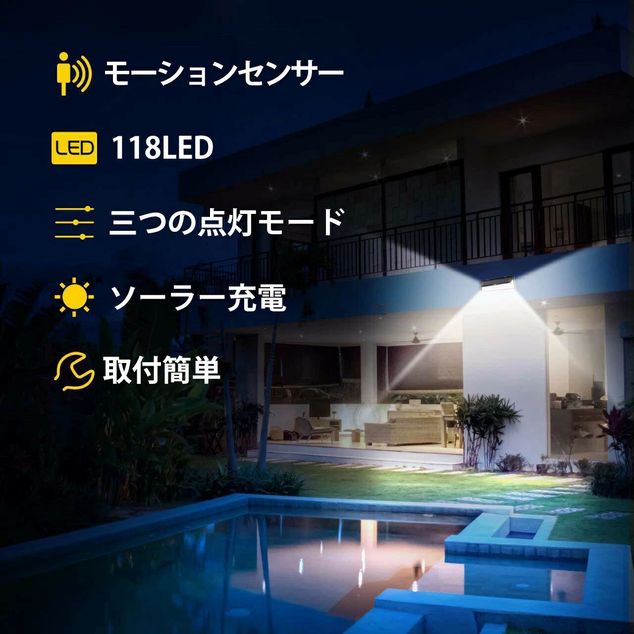 4個セットソーラーライト 屋外 センサ