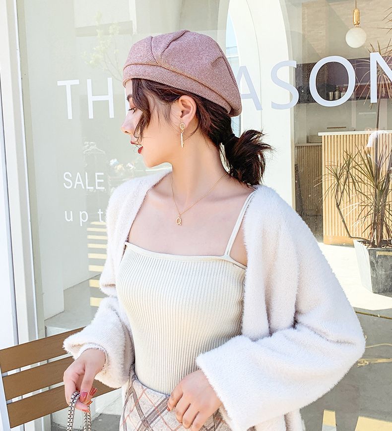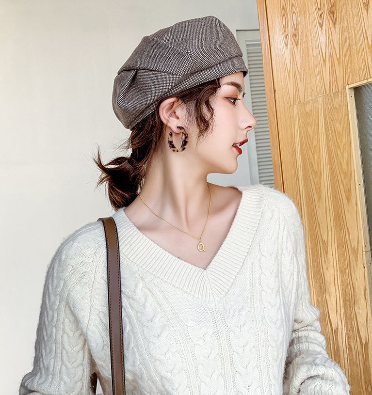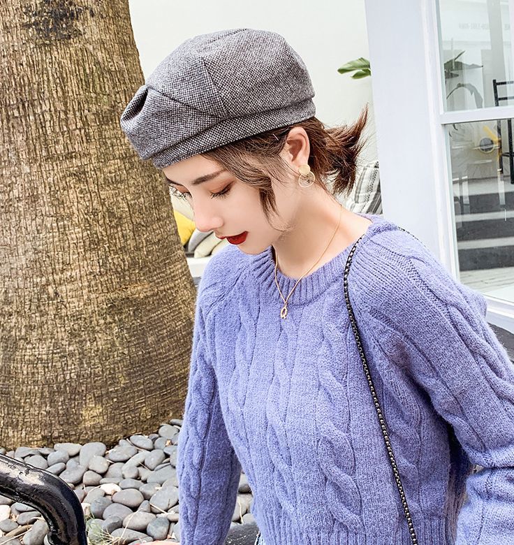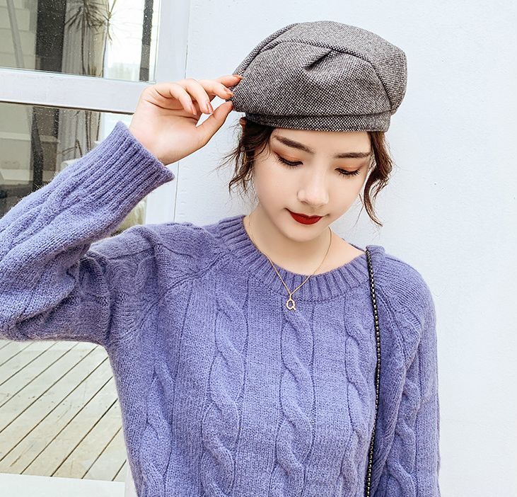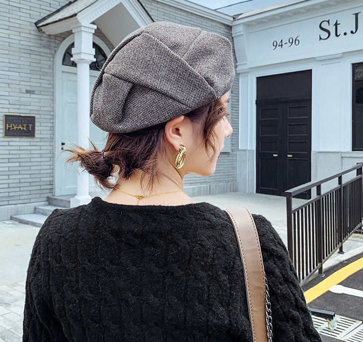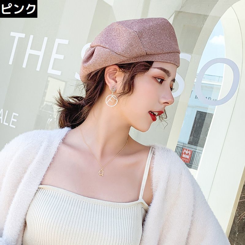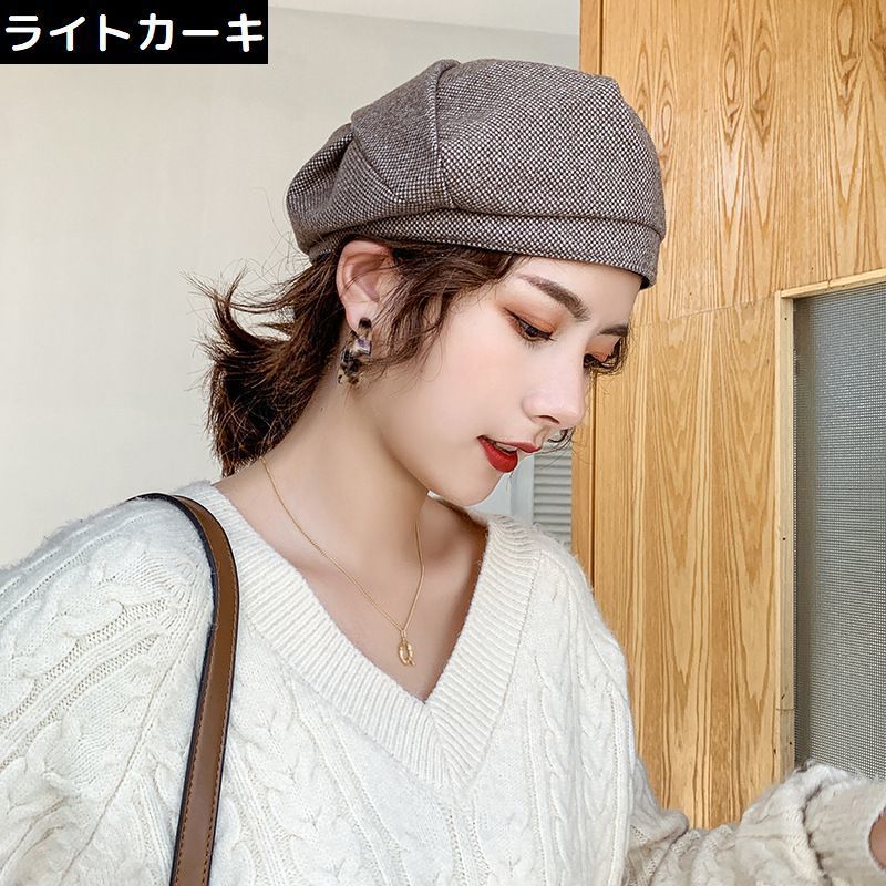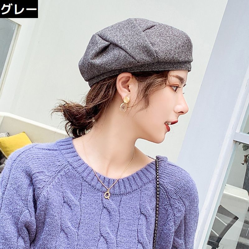 ベレー帽 ベレーキャップ 帽子 ぼうし レディース ツイード風 厚手 防寒 防風 保温 暖かい 小顔効果 おしゃれ 無地 秋冬