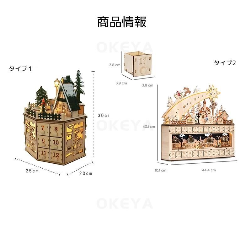 アドヴェントカレンダー 木製 クリスマ タイプ1 タイプ2