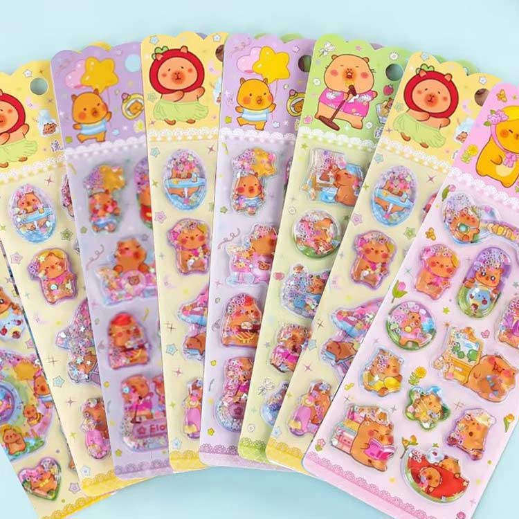 12枚セット ウォーターシール ぷくぷくシール ぷっくりシール デコシール シール帳 3D立体 シャカシャカシール カピバラさん キャラクター 水揺れシール ご褒美シール 手帳 ノー スパンコール入り