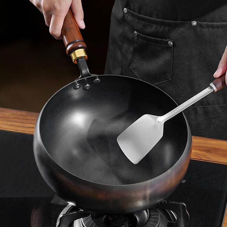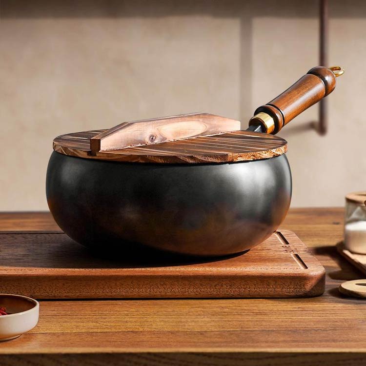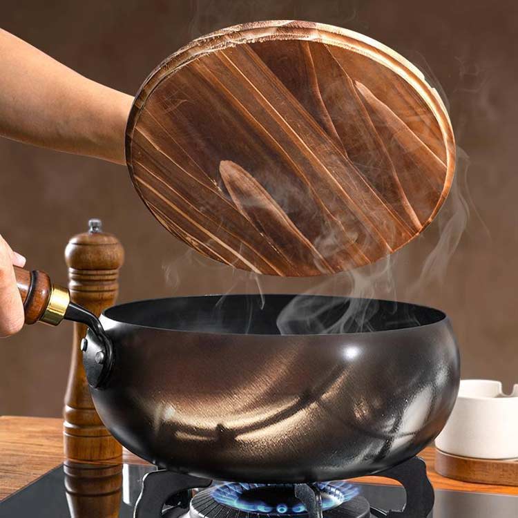 中華鍋 伝統鉄鍋 ガス代節約 鉄手作り 鉄鍋のみ 木蓋付き ガラス蓋付き 24cm 26cm 28cm