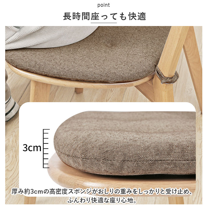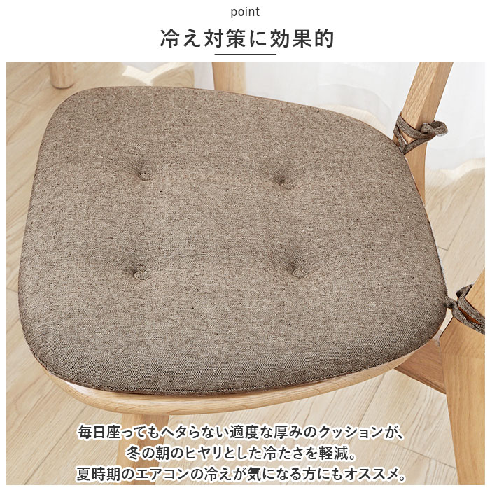 ・毎日座ってもヘタらない適度な厚みのクッションが、冬の朝のヒヤリとした冷たさを軽減。夏時期のエアコンの冷えが気になる方にもオススメ。