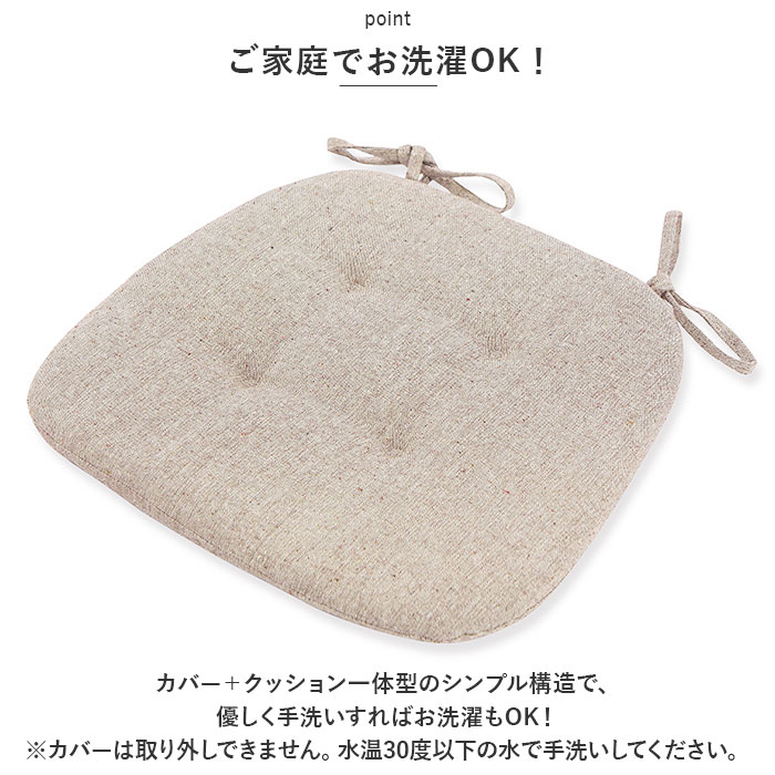 ・カバー+クッション一体型のシンプル構造で、優しく手洗いすればお洗濯もOK!(※カバーは取り外しできません。水温30度以下の水で手洗いしてください。)