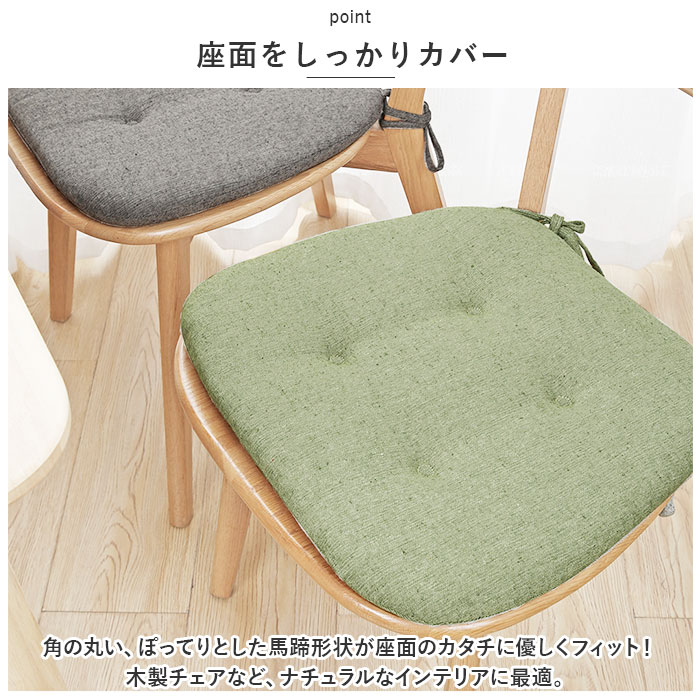 ・角の丸い、ぽってりとした馬蹄形状が座面のカタチに優しくフィット!木製チェアなど、ナチュラルなインテリアに最適。