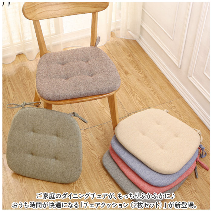 椅子 クッション 2枚セット 座布団 ブラックグレー ブラウン ベージュ ブルー レッド グリーン