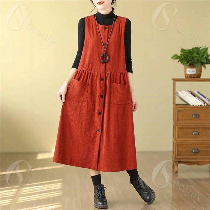 コーデュロイ ジャンパースカート レデ レディースファッション 続々入荷中 オレンジ グリーン ブラウン M L XL XXL
