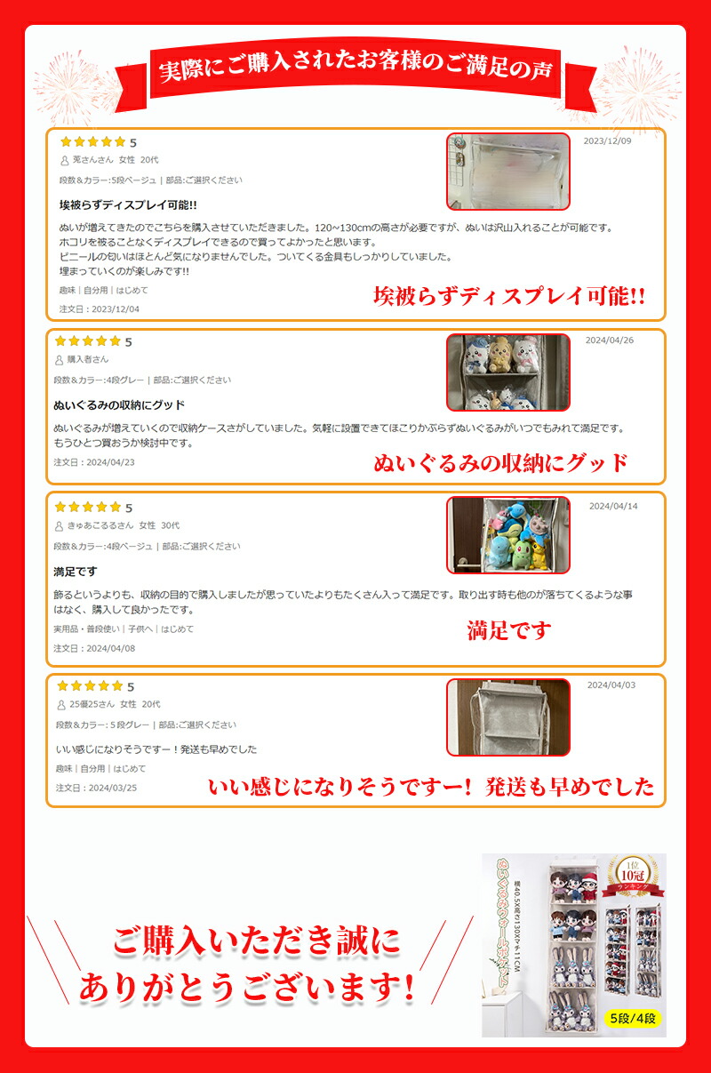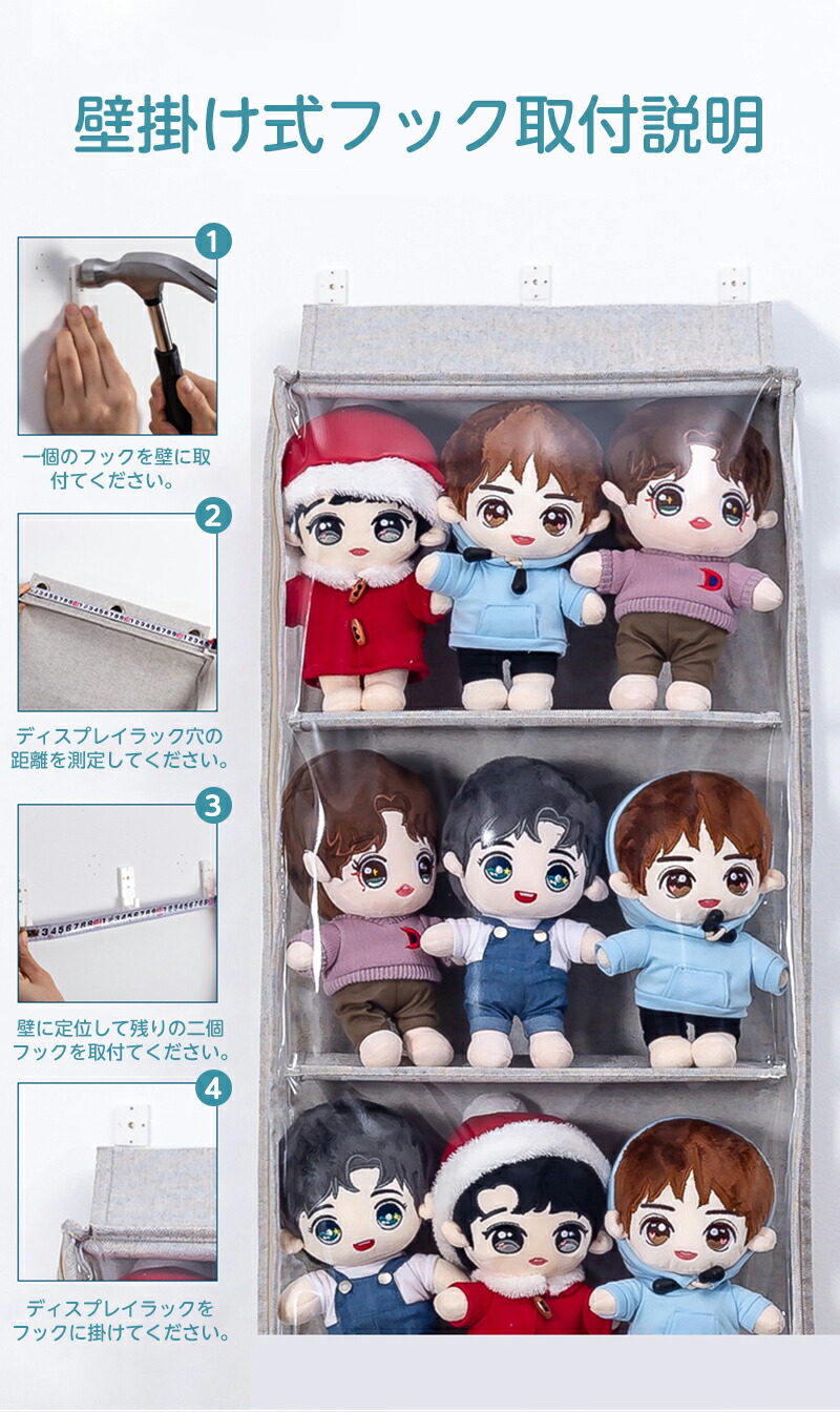 ぬいぐるみウォールポケット ぬいぐるみ 4段ベージュ 5段ベージュ 4段グレー 5段グレー