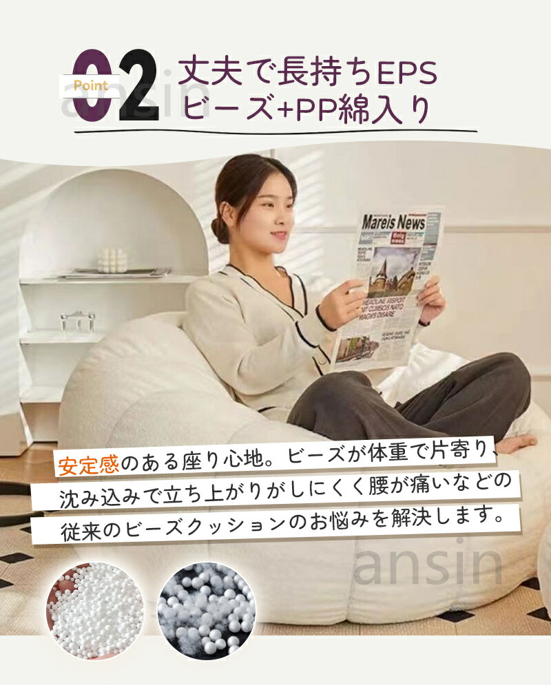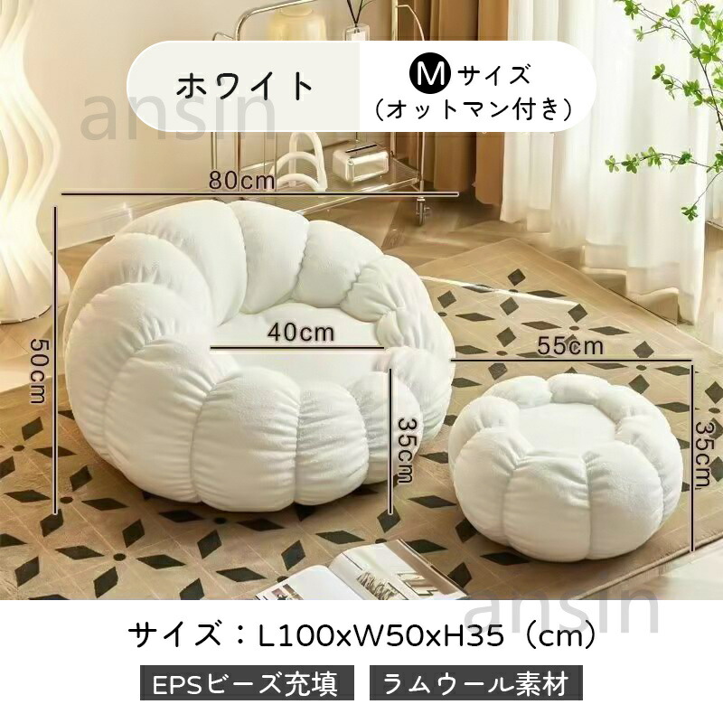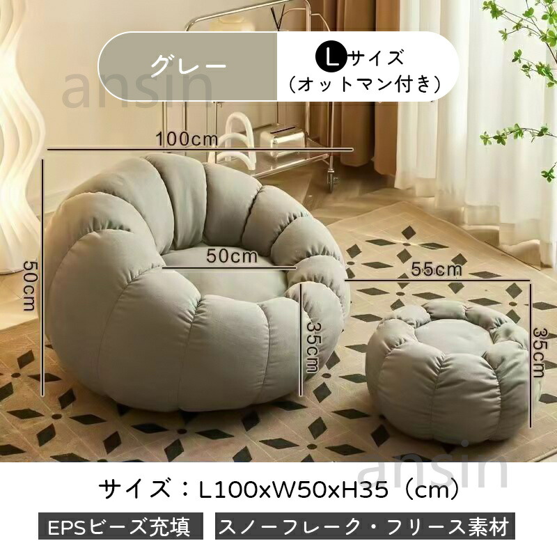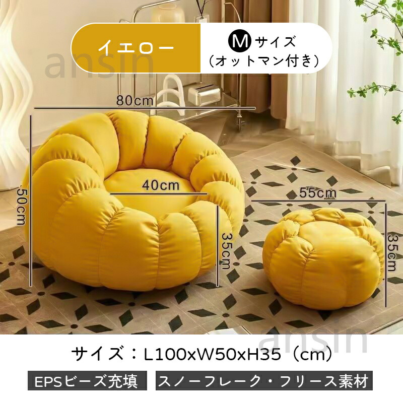 ビーズクッション ソファ 一人掛け 一 ホワイト ピンク ライトブラウン イエロー グレー ベージュ Mサイズ(50*80cm) Lサイズ(50*100cm)