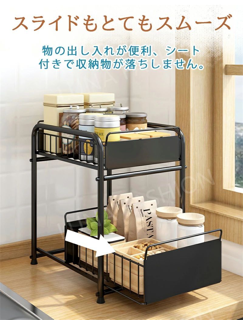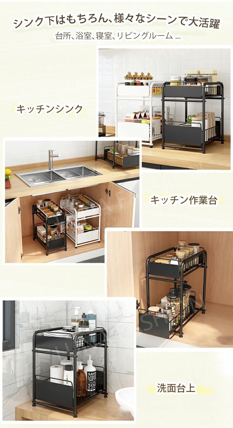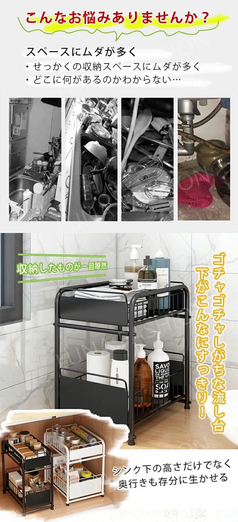 スライドラック シンク下収納 スライド ホワイト ブラック S L XL