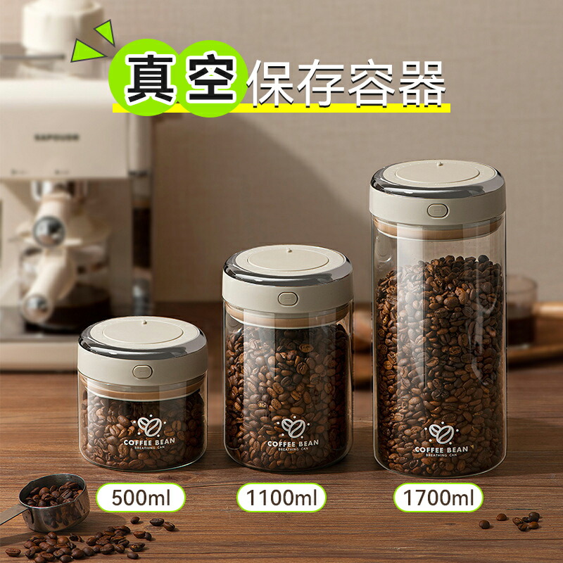真空保存容器 ガラス コーヒー キャニ 保存容器 調味料入れ 保存容器 キャニスター 50%Off 500ml 1100ml 1700ml 1個 2個
