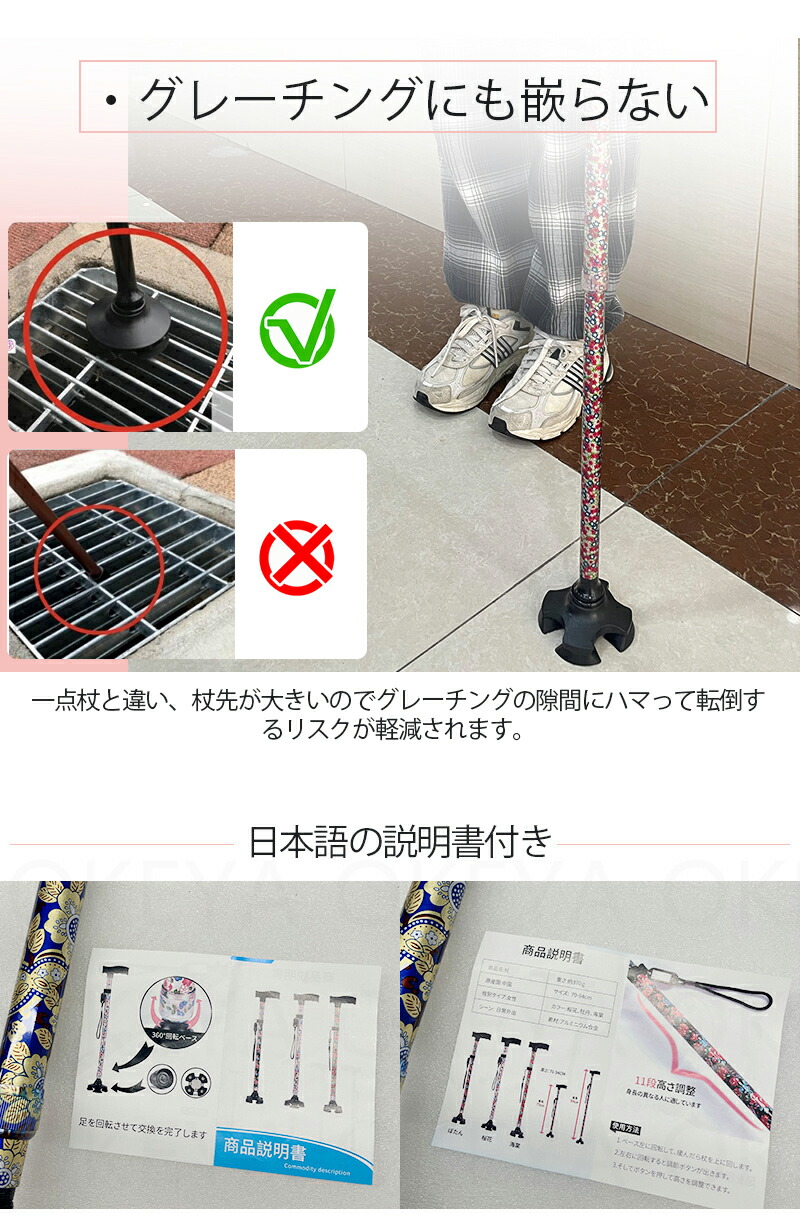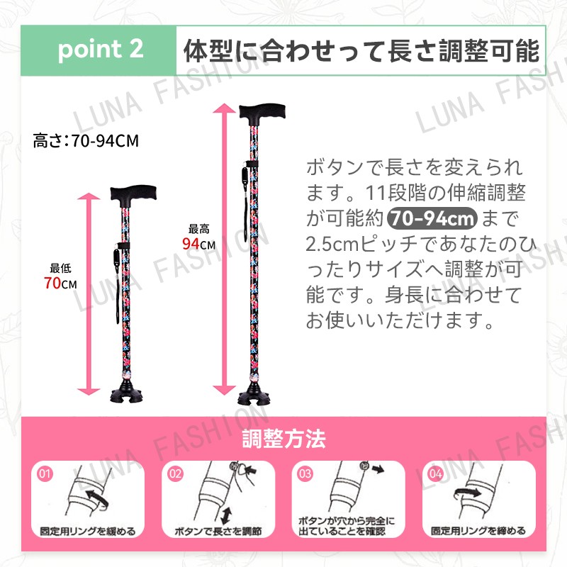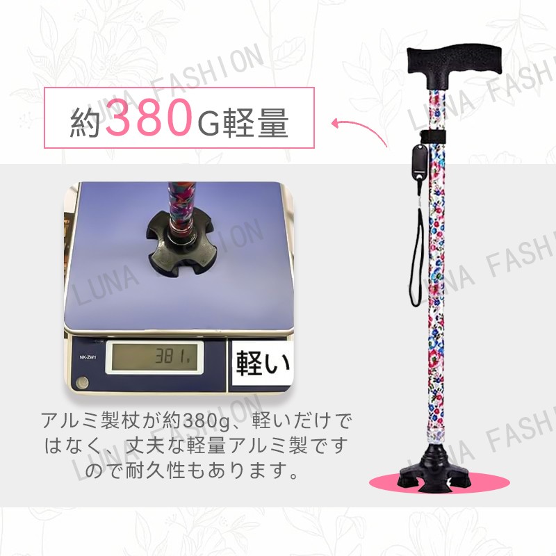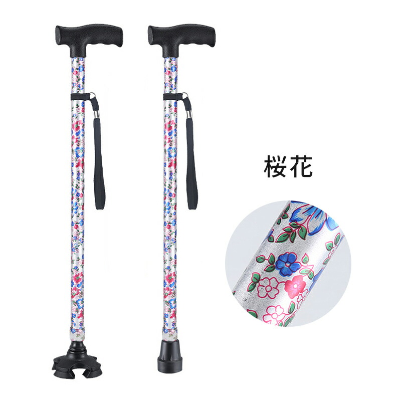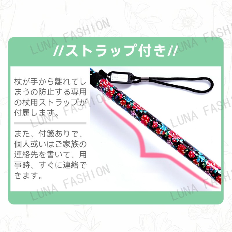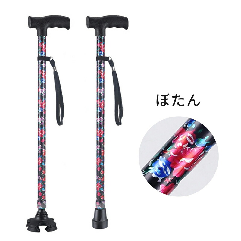 母の日 父の日 杖 軽量 女性用 つえ 介護 ステッキ おしゃれ 花柄 伸縮 伸縮式 自立式 自立杖 収納袋 歩行補助 長さ調節 補助 レディース 婦人用 敬老の日 誕生日 プレゼント バレンタイン ギフト 人気