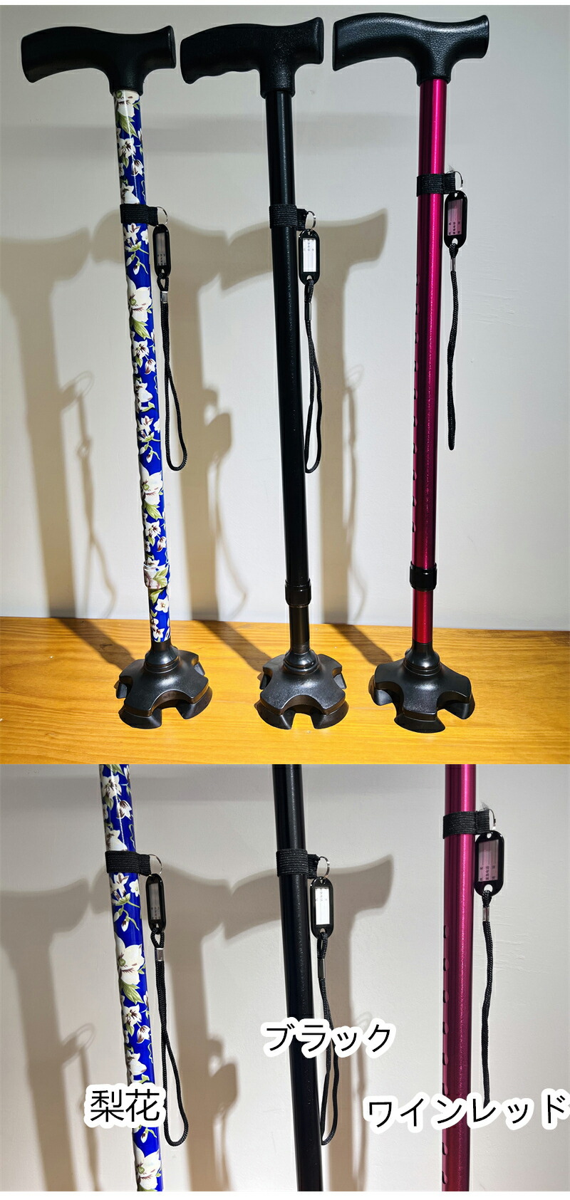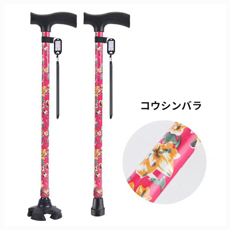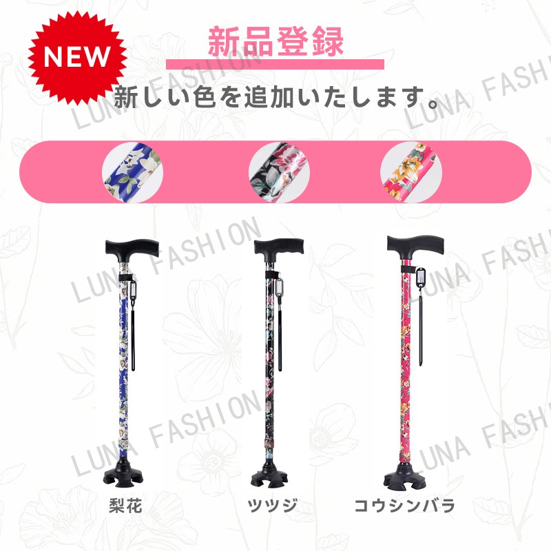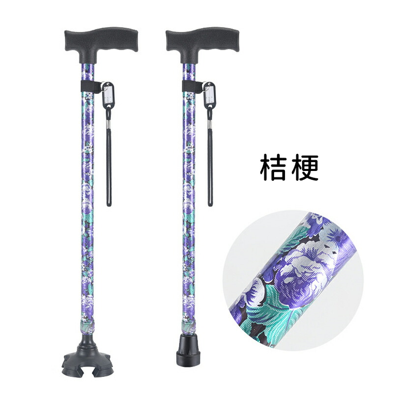 杖 軽量 介護 女性 男性 自立 伸縮 海棠 ぼたん 桜花 桔梗 紫鳶 無地-ブラック 無地-レッド 多花 ツツジ コウシンバラ