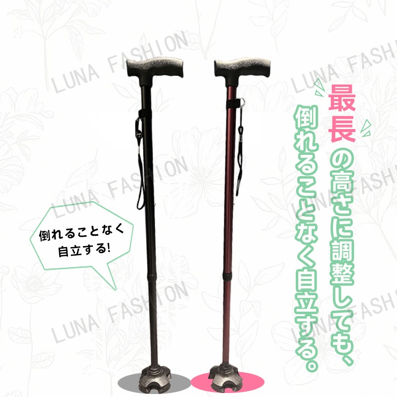 杖 軽量 介護 女性 男性 自立 伸縮式 長さ調節可能 自立式 自立杖 歩行補助レディース 婦人用 折り畳み不可 屋外転倒防止 バレンタイン ギフト 人気 父の日 敬老の日 夏ギフト お中元 母の日