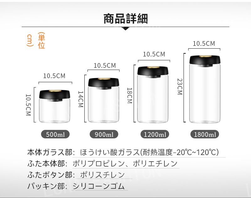 真空保存容器 ガラス ペットフード コ キッチン用品 食器 調理器具 期間限定割引クーポン 500ml 900ml 1200ml 1800ml