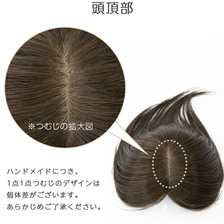 結び目が表面に出ない構造のため、まるで本物の頭皮のような質感に仕上がり、どこで分けても自然に見える点が大きな魅力です。