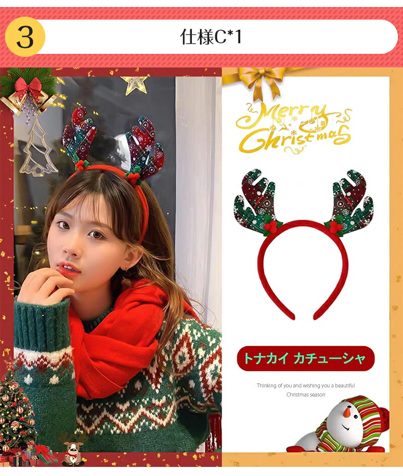 クリスマス カチューシャ 1個 トナカ コスプレ 変装 仮装 キャップ ヘッドアクセサリー 早い者勝ち!ポイントUP A B C D F G H I J