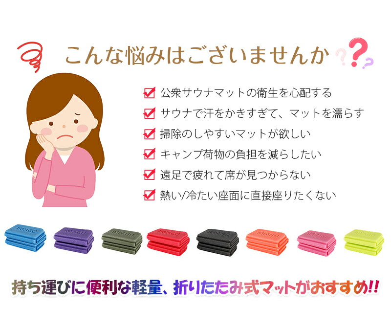 サウナマット 折り畳みマット コンパク ブラック ブルー カーキ色 オレンジ パープル レッド ピンク 蛍光グーリン