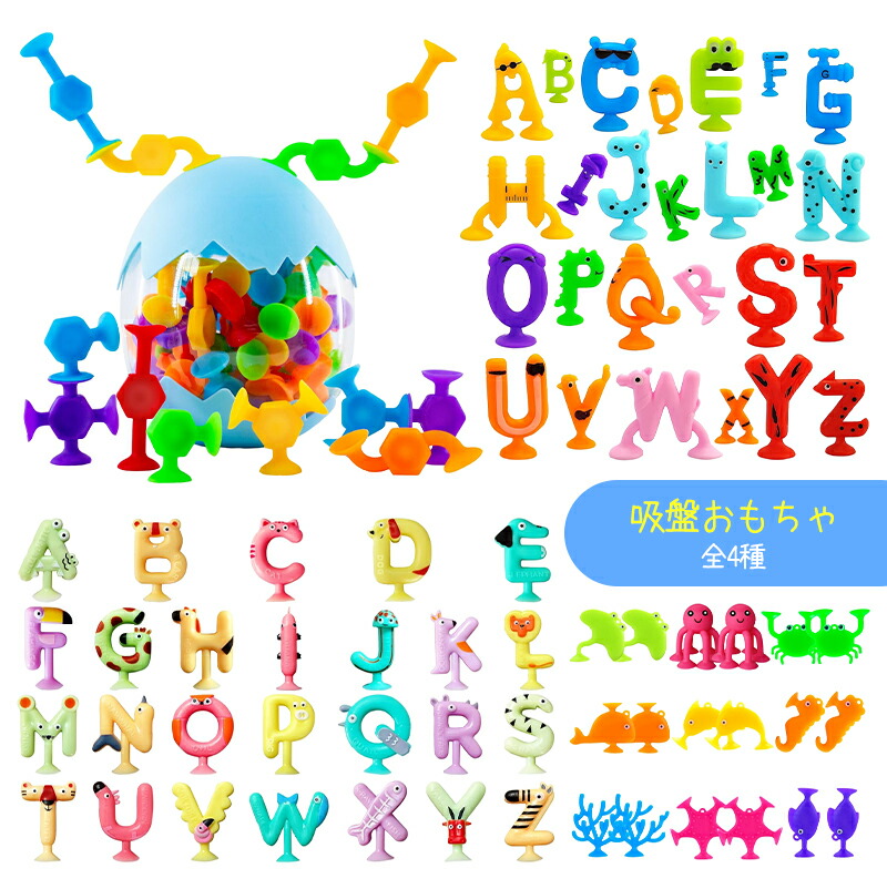 吸盤ブロック セット 全4種 知育 壁 ブロック38pcs 海洋生物18pcs アルファベット52pcs アルファベット26pcs
