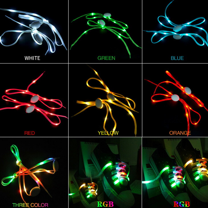 光る靴ひも LED 7カラー 夜ランニ ジョギング マラソン シューズ レディースシューズ 豊富 レインボー レッド イエロー ホワイト ブルー オレンジ グリーン