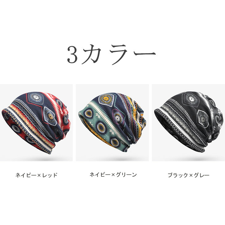 3カラー エスニック幾何柄ターバン ヘアバンド ヘッドバンド 帽子 幾何柄 ネックウォーマー ワッチ おしゃれ ニット帽 3way 秋冬 紫外線対策 UVカット マフラー スヌード レディー 男女兼用