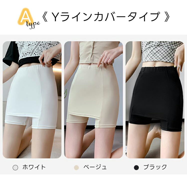 Yラインカバーペチパンツ ペチコート レディース インナー 下着 ペチコート 通販 ホワイト ベージュ ブラック グレー グリーン Aタイプ M-L Aタイプ L-XL Bタイプ M-L Bタイプ L-XL Cタイプ M-L Cタイプ L-XL