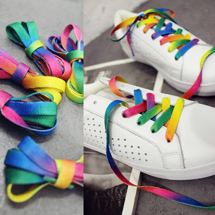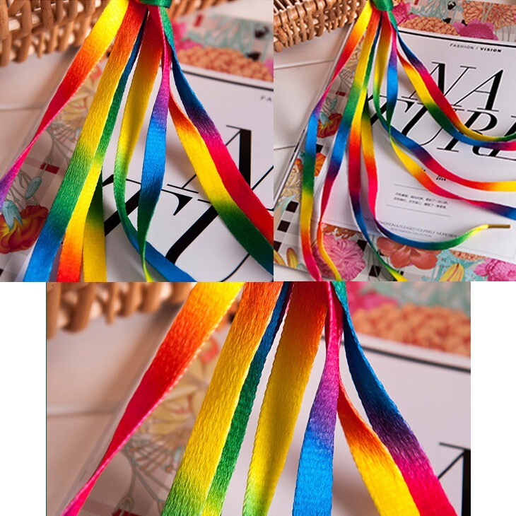 レインボー カラフル 靴紐 靴ひも b系 ヒップホップ ストリート系 ファッション メンズ レディース スニーカー シューレース 平紐 110cm キッズ 子供 80cm