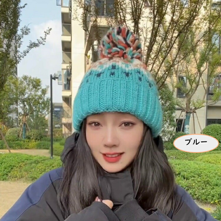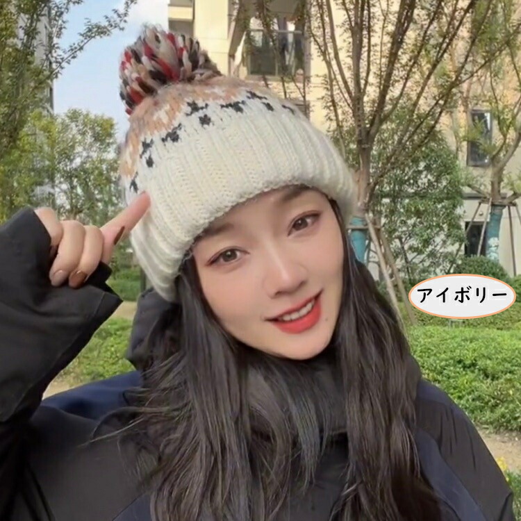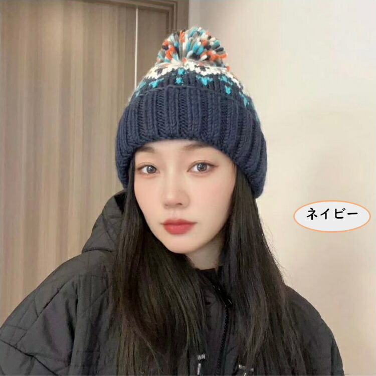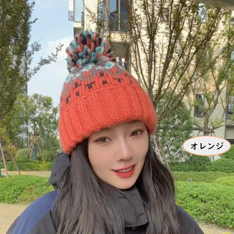 レディース ニット帽 ポンポン付き か 帽子 レディース帽子 ニット帽 人気 ネイビー オレンジ アイボリー ブラック ブルー