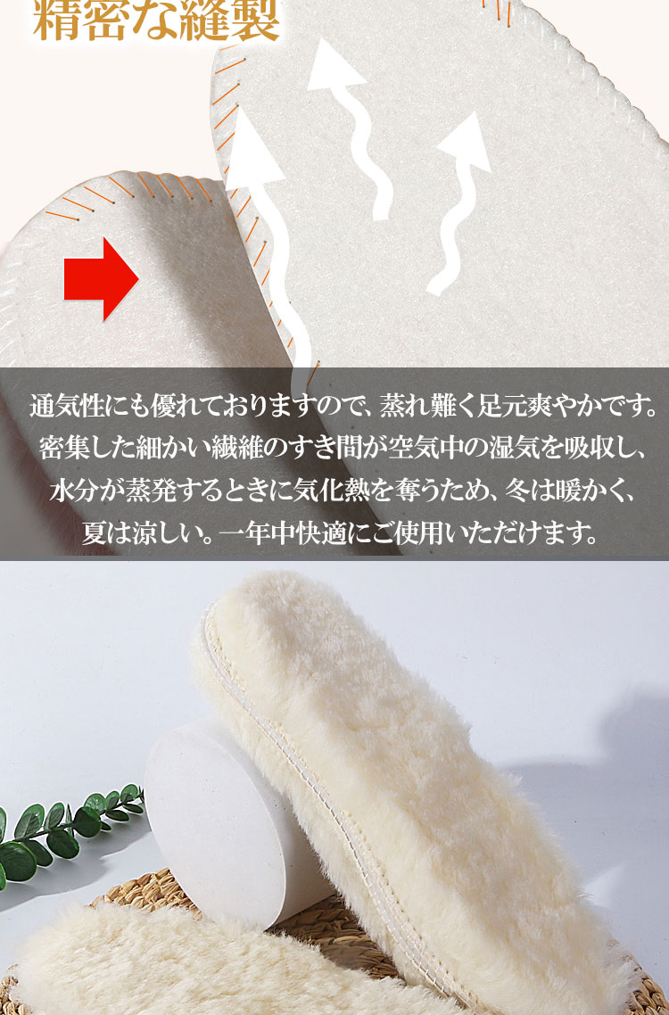 天然ウールを羊皮インソールに二重に縫って作られた製品です。