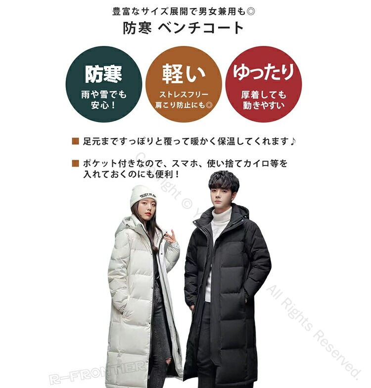 ベンチコート メンズ 冬 膝下 ロング スポーツウェア アクセサリー ベンチコート レディースベンチコート 豊富な品揃え ブラック ホワイト S M L XL 2XL