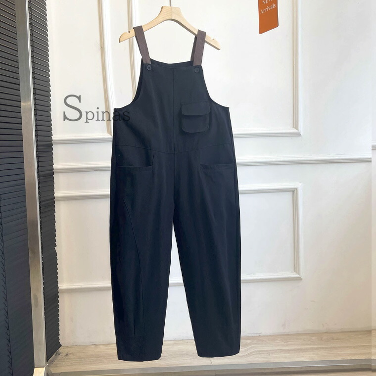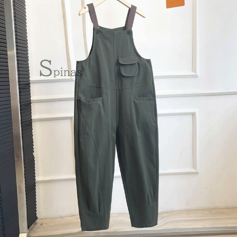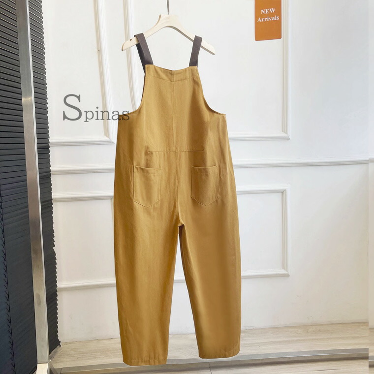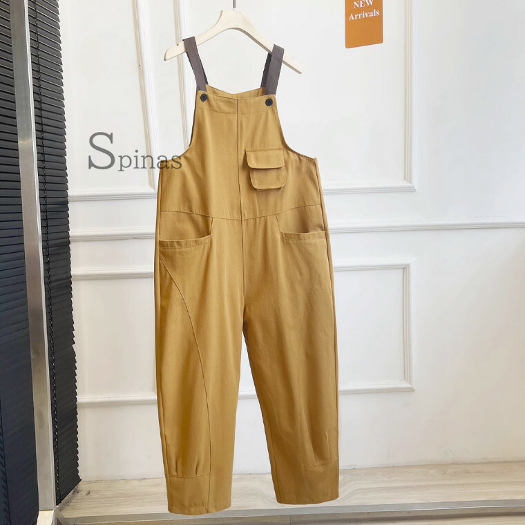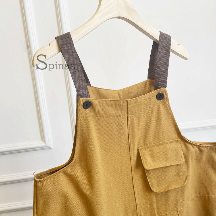 くすみカラーのお洒落サロペット 40代 オールインワン サロペット 新作 M-L XL ブラック カーキ イエロー