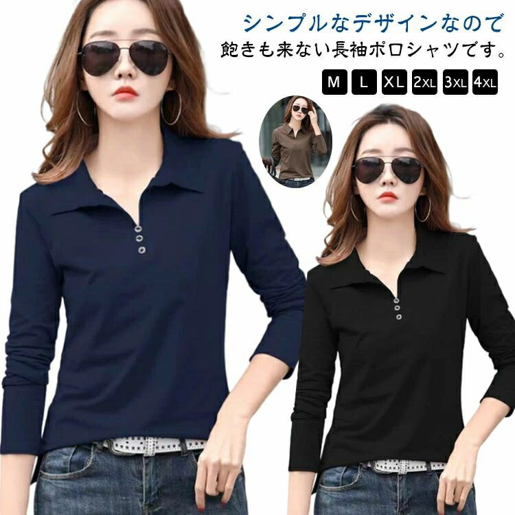 長袖 ポロシャツ レディース スキッパ トップス ポロシャツ 通販 ブラック ネイビー ピンク ブラウン M L XL 2XL 3XL 4XL