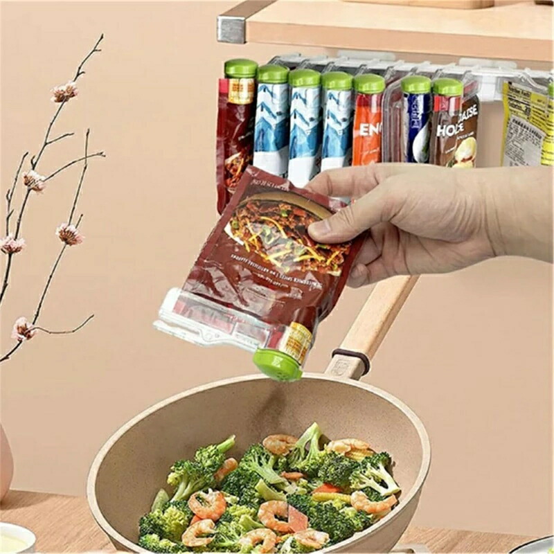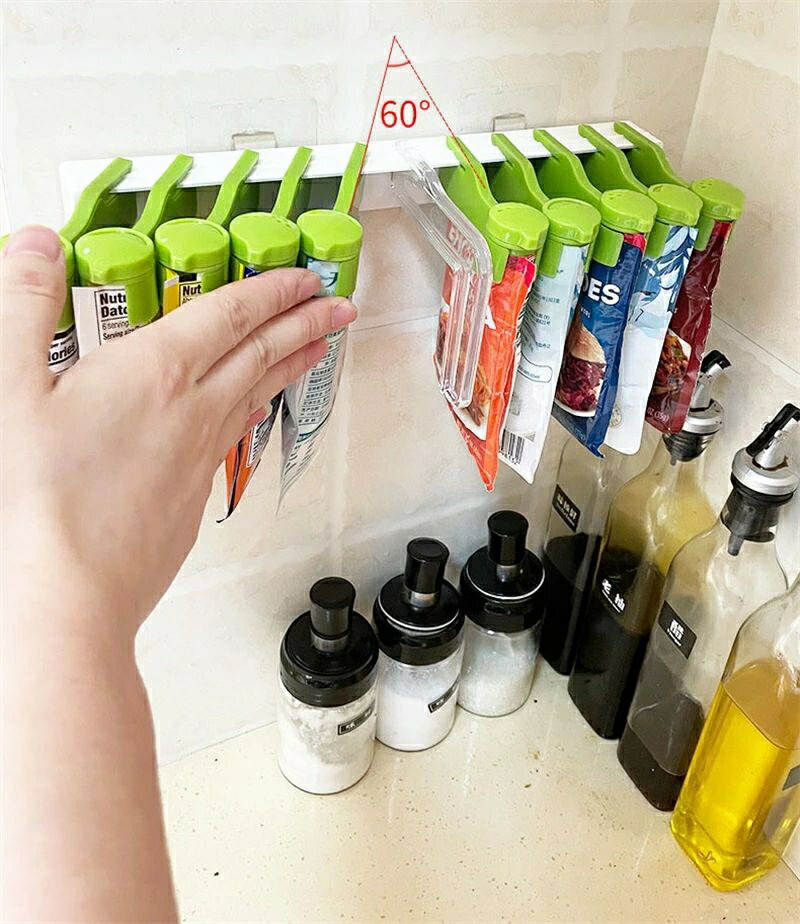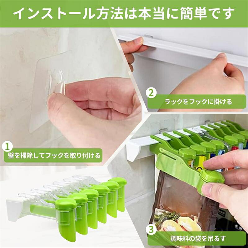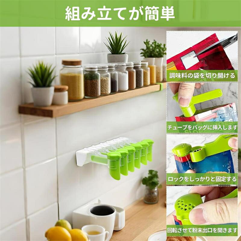 調味料ラック 袋止めクリップ ふりかけ キッチン整理用品 整理ボックス 新作 透明 グリーン 3穴 6穴 10穴