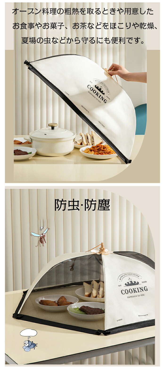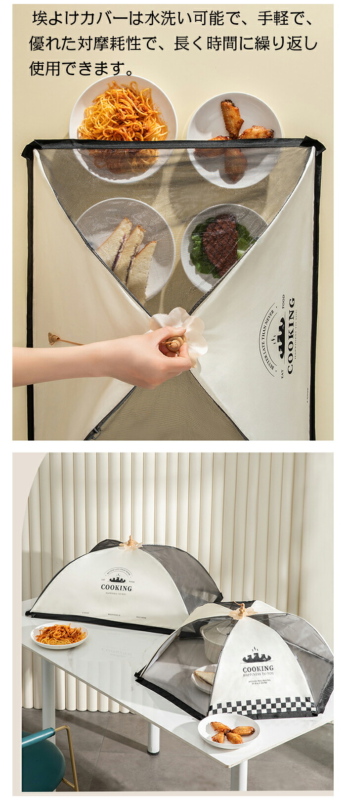 食卓カバー フードカバー 折り畳み 洗 配膳用品 キッチンファブリック その他 早い者勝ち!ポイントUP rick COOKING(ベージュ) COOKING(ストライプ) 丸型 角型