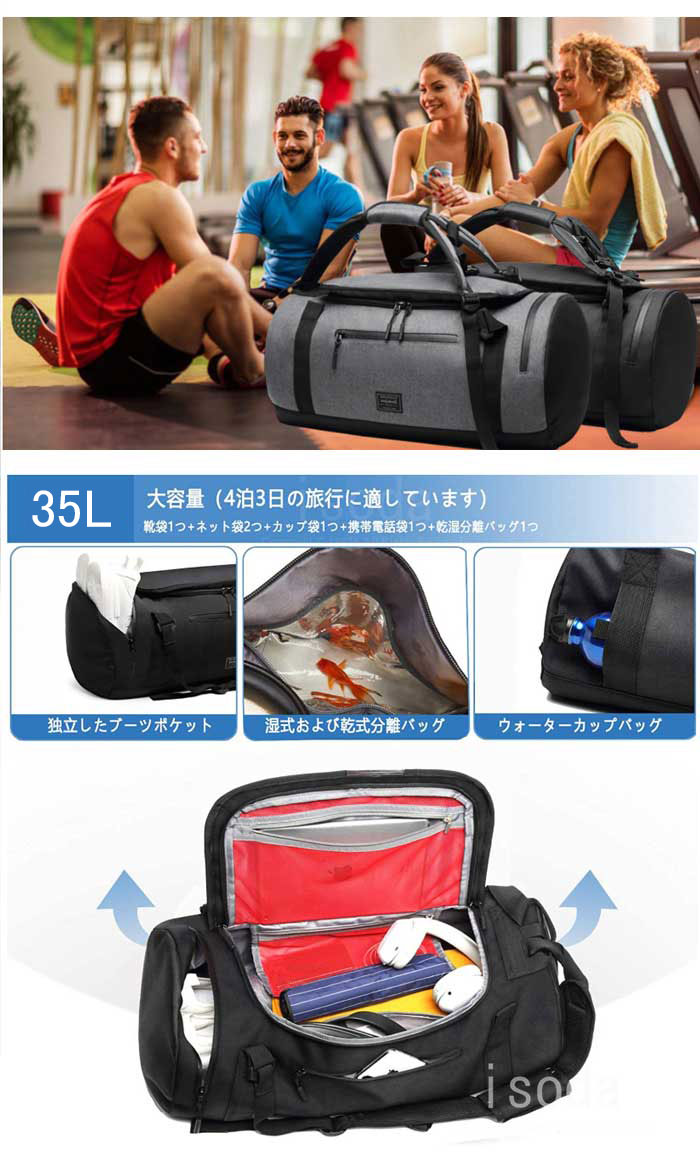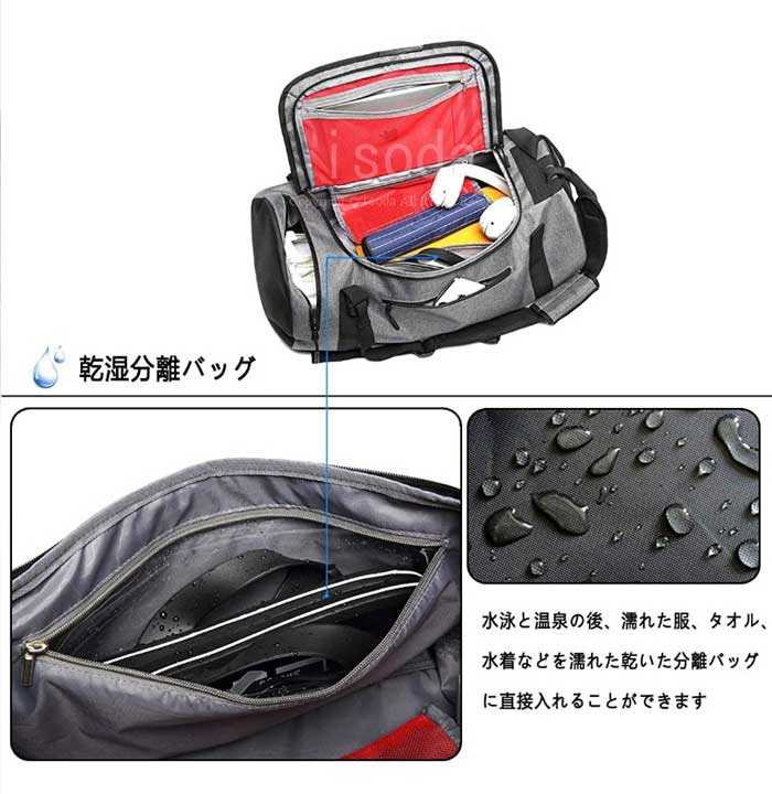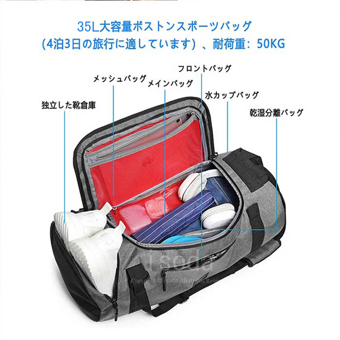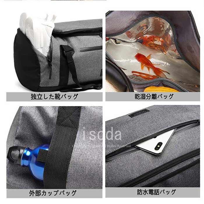 ボストンバッグ 孤立した靴収納袋があります、仕事の後に靴を交換してください運動する。スポーツバッグ 側面には別の防水バッグがあり、汚れた服は別々に保管できます。