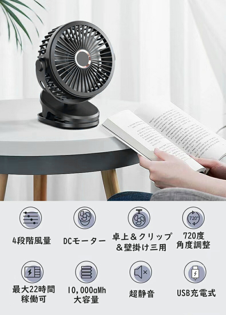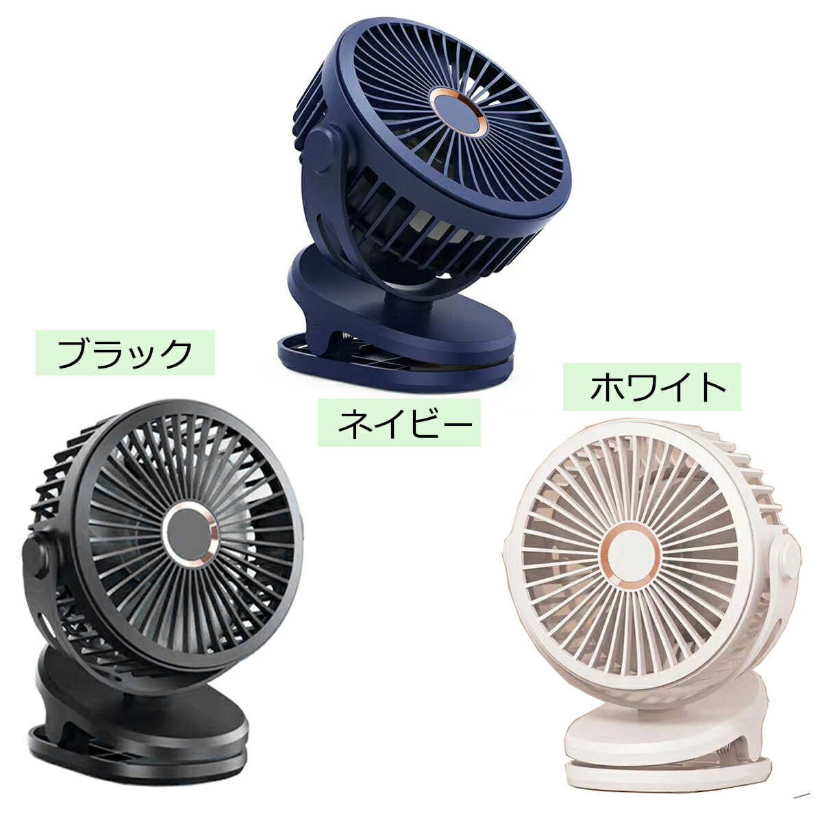 卓上 扇風機 クリップ 車用 壁掛け ホワイト ブラック ネイビー