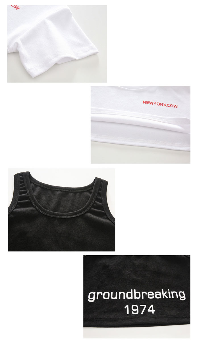韓国子供服 女の子 夏服 ショートTシャツ+ベスト カジュアル ファッション キッズ ガールズ ダンス衣装 トップス 白いTシャツ 丸首 半袖 黒のベスト コーデ 普段着 ジュニア服 オシャレ 110cm 120cm 130cm 140cm 150cm 160cm ダンス衣装 子供服 トップス チア へそ出し