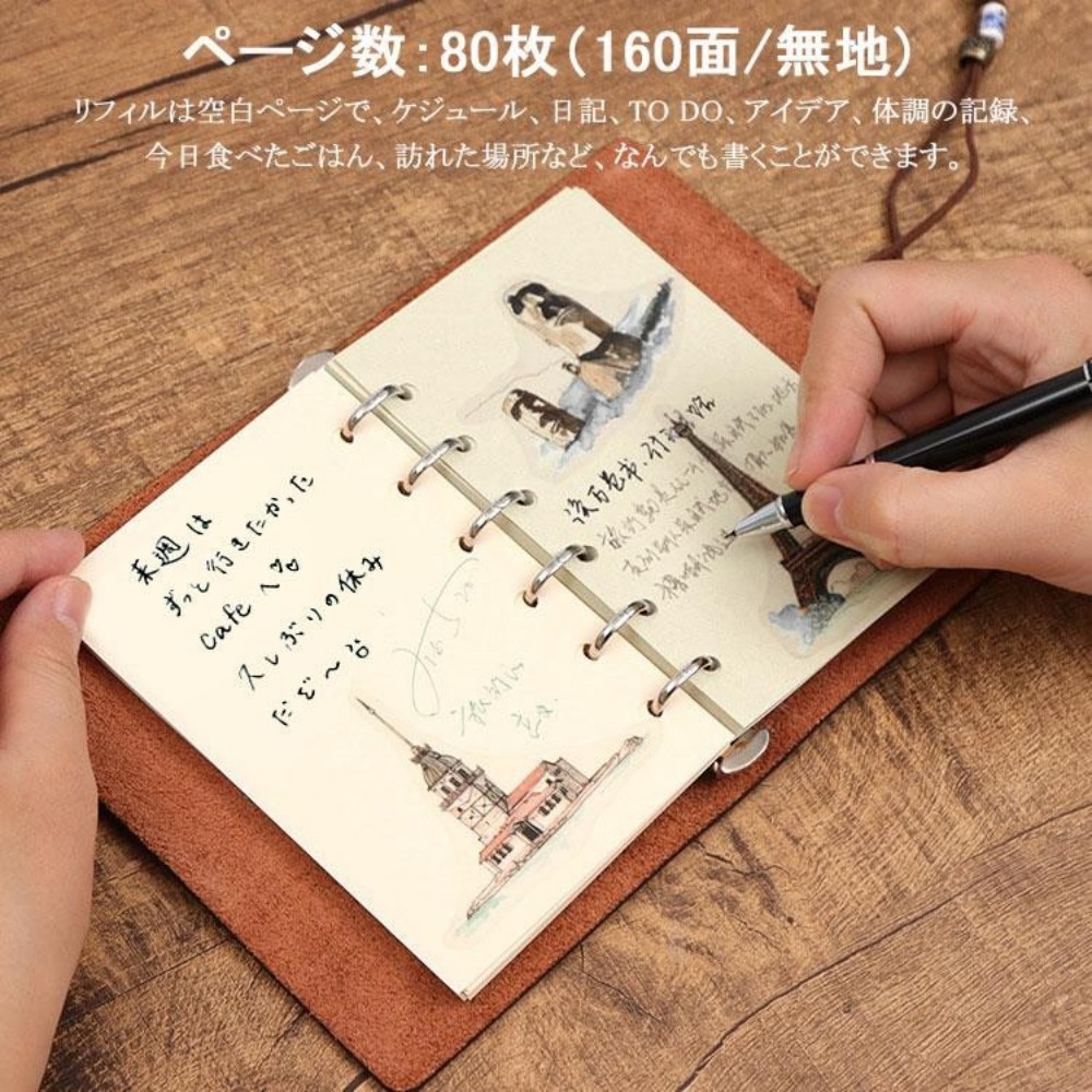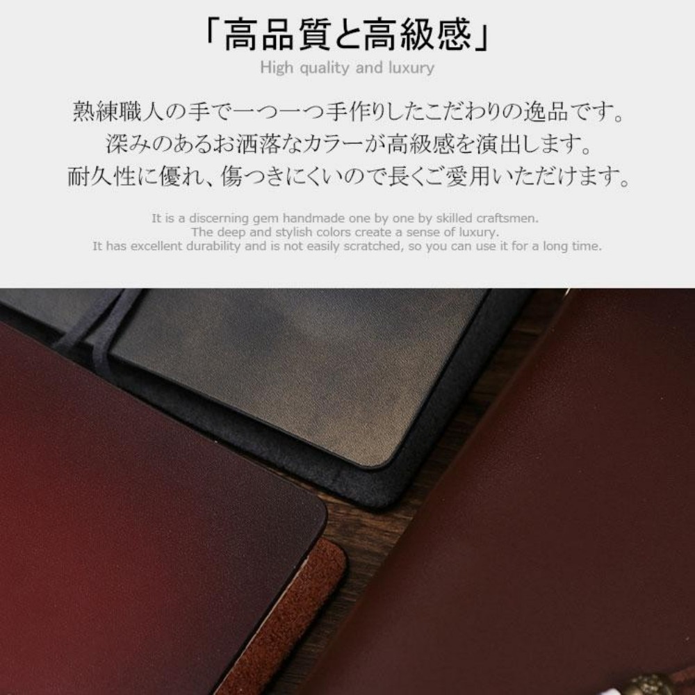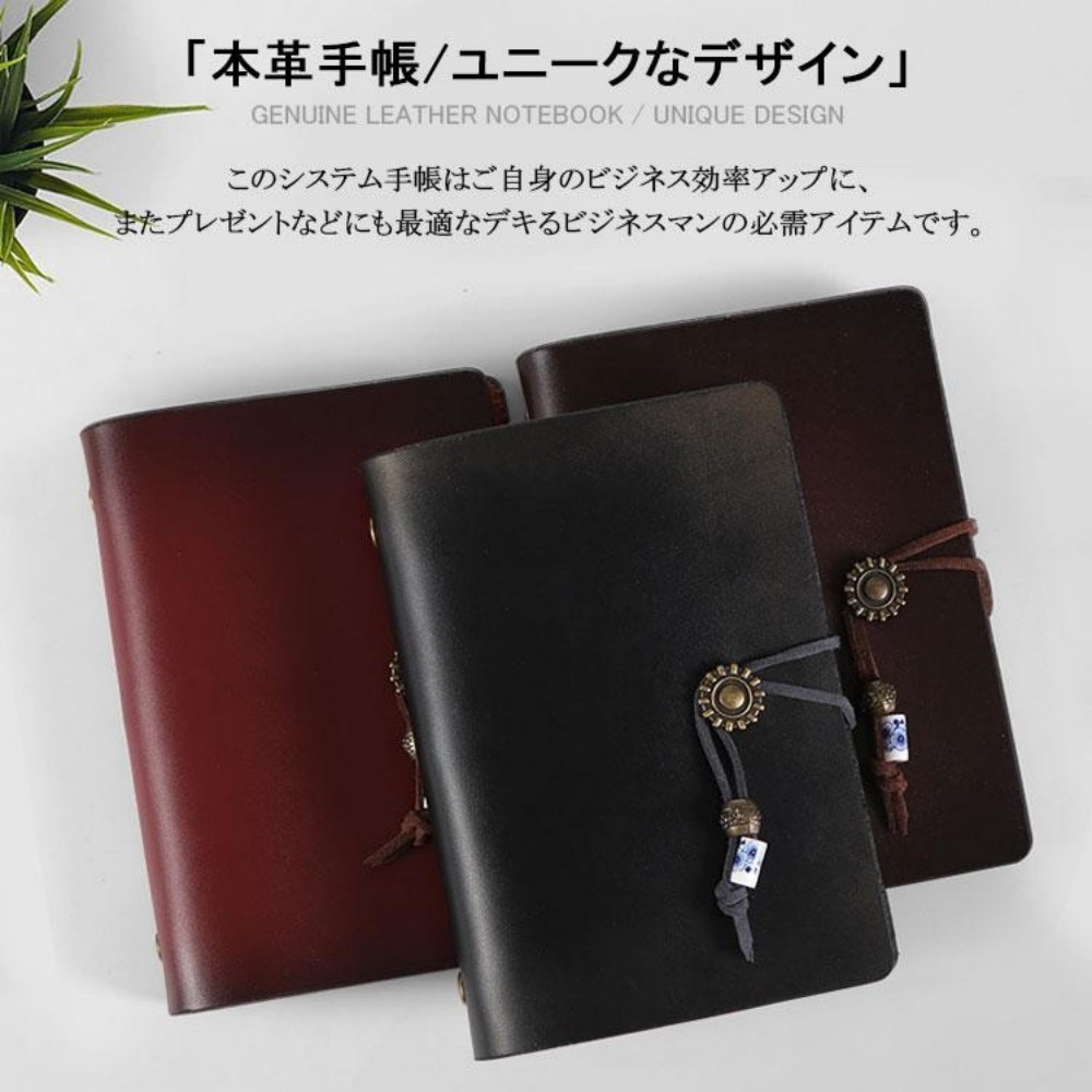 システム手帳 本革ノート A7サイズ レッド ブラック