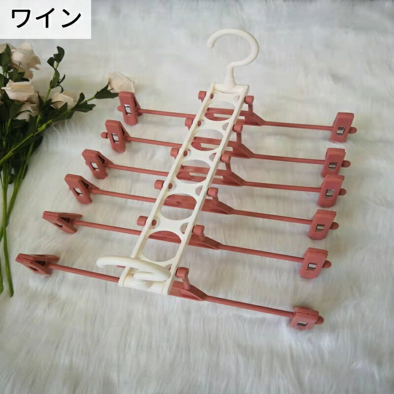 ズボンハンガー 多連 6連 クリップ ブラック ホワイト グレー ワイン