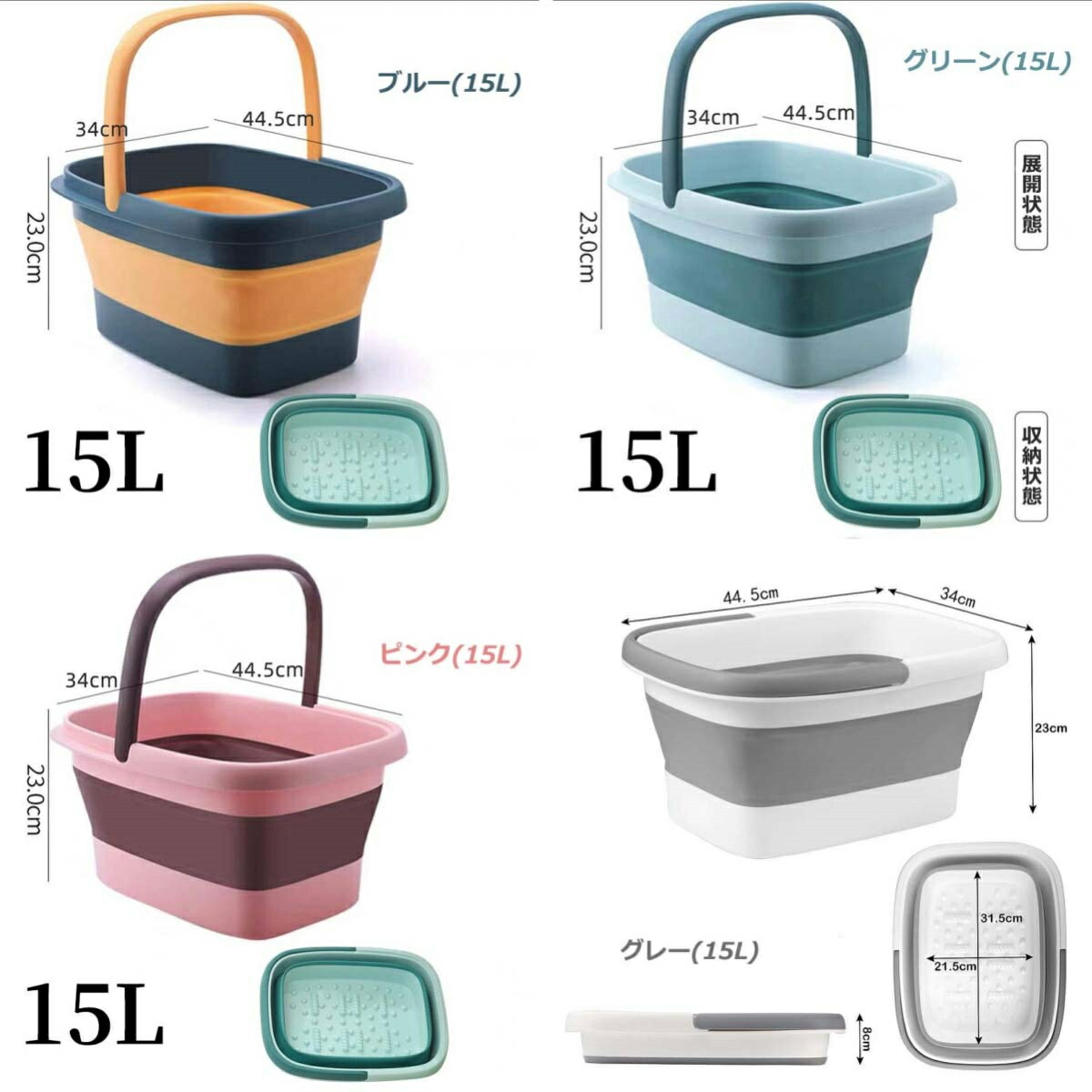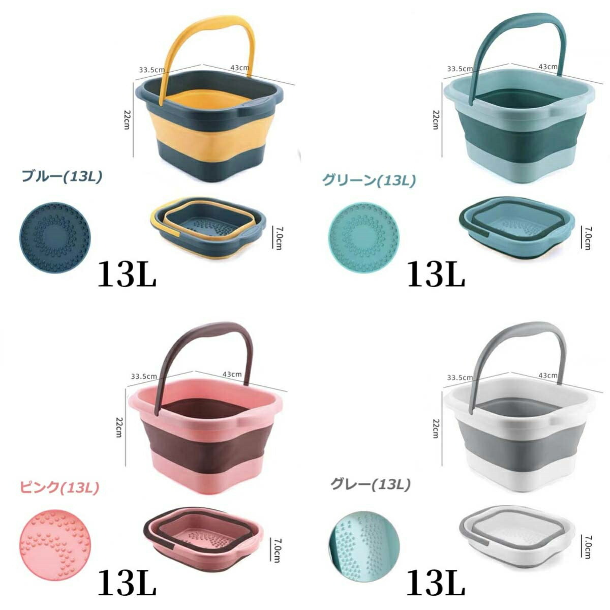 フットバス 足湯 バケツ 折りたたみ 日用品雑貨 文房具 手芸 人気 ブルー13L グリーン13L ピンク13L グレー13L ブルー15L グリーン15L ピンク15L グレー15L