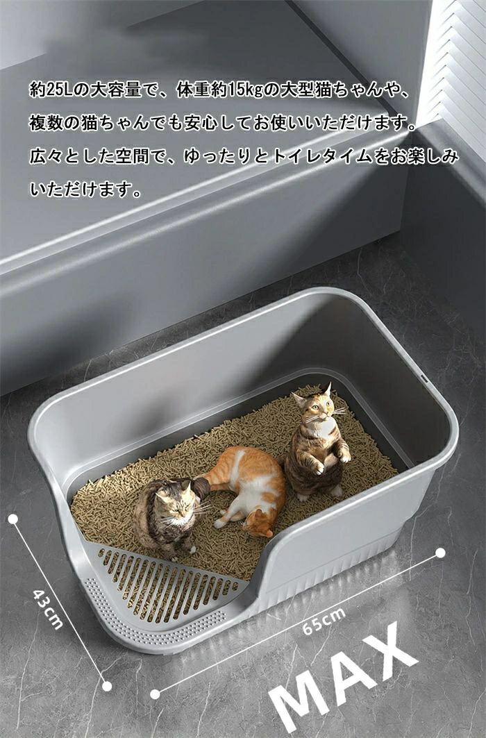 超大型猫用 防滴半密閉型トイレ オープ ペット ペットグッズ 新作 グレー イエロー グリーン
