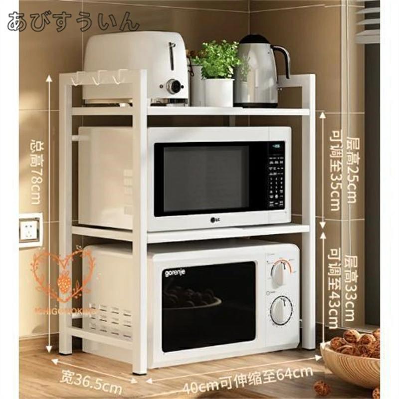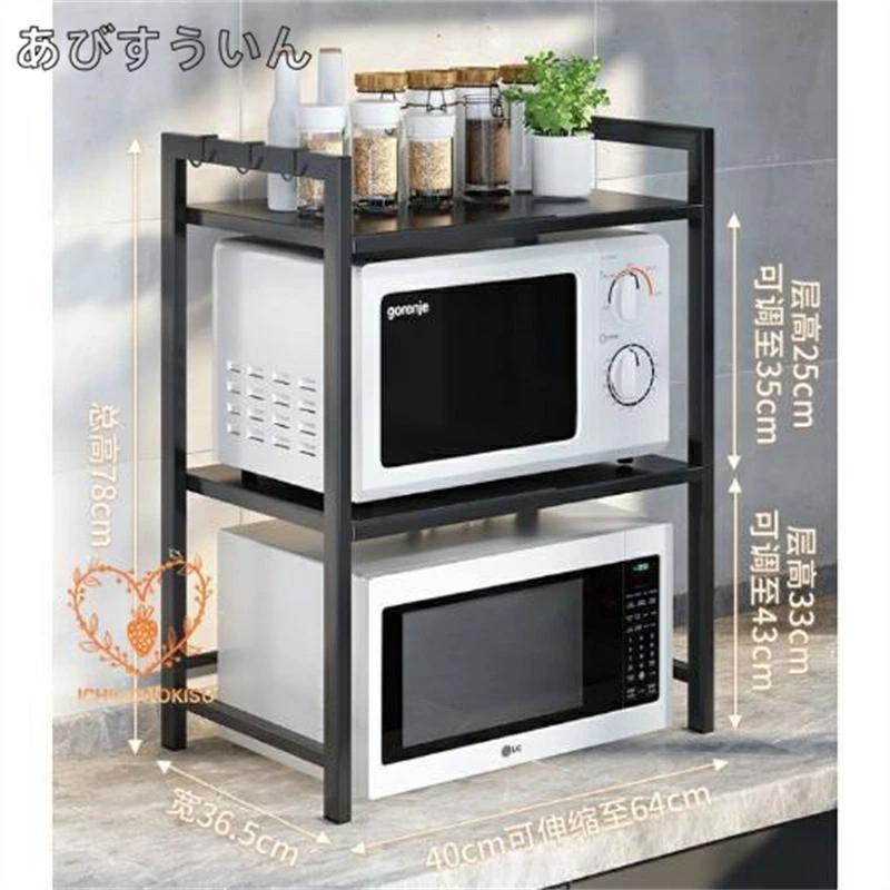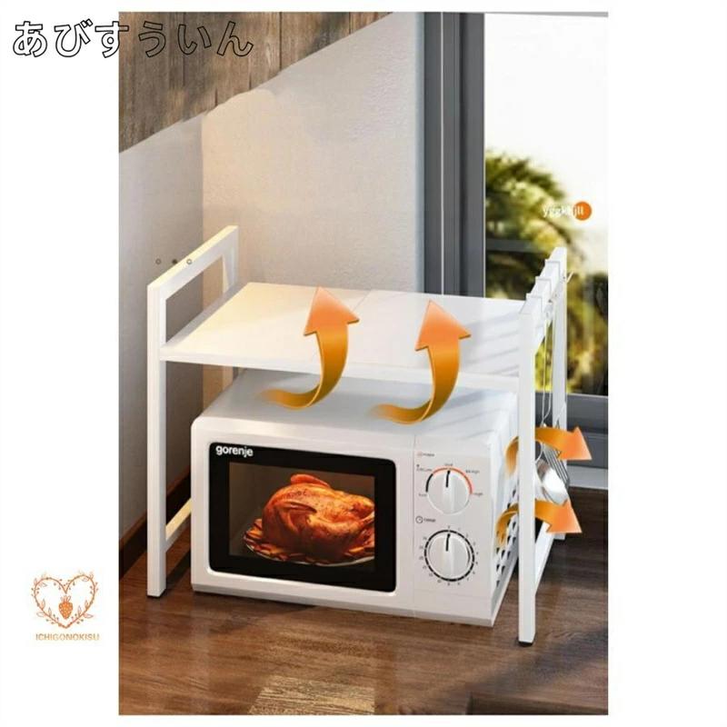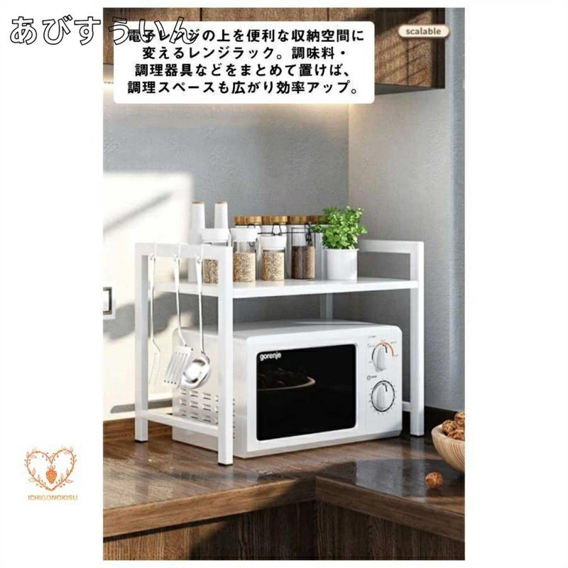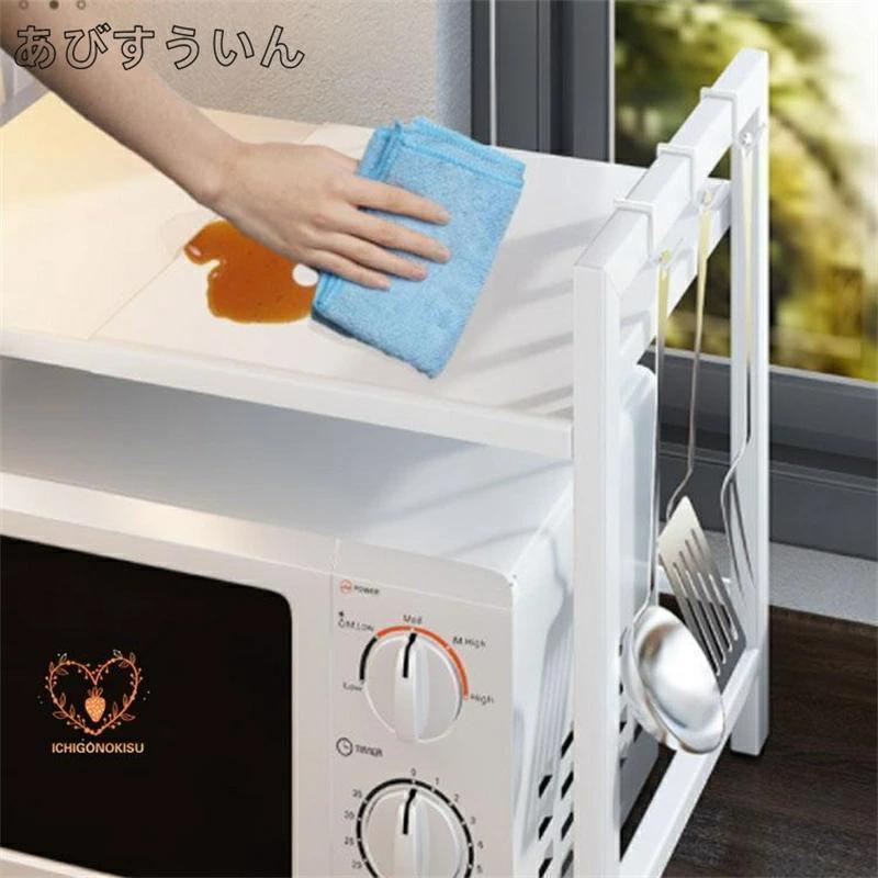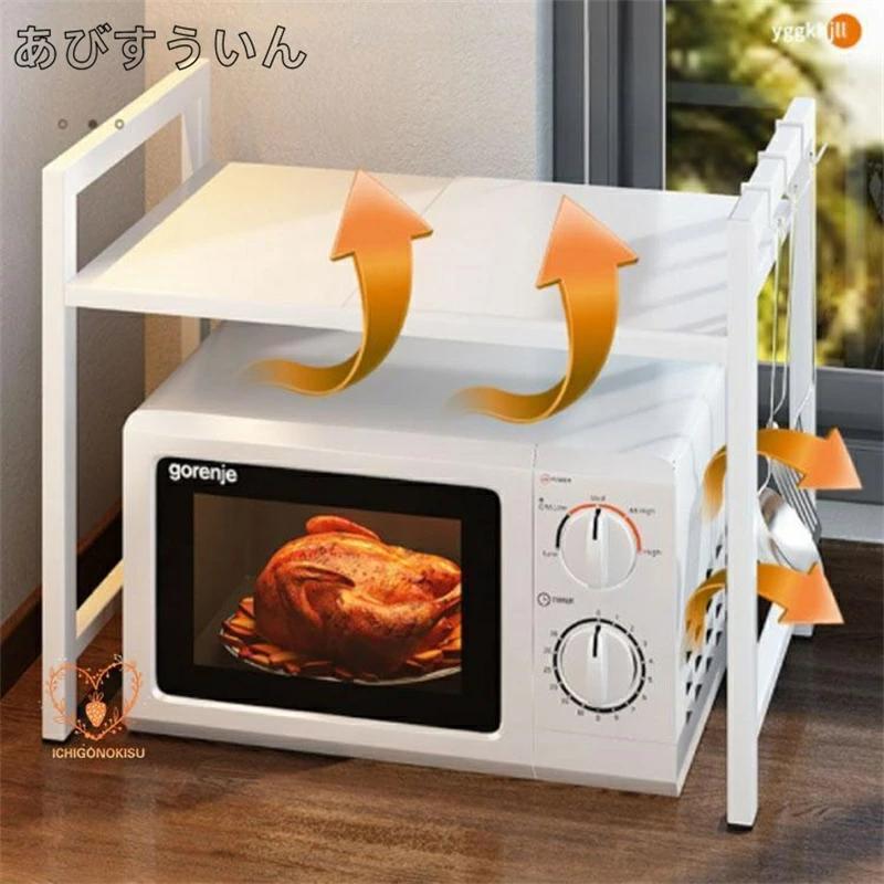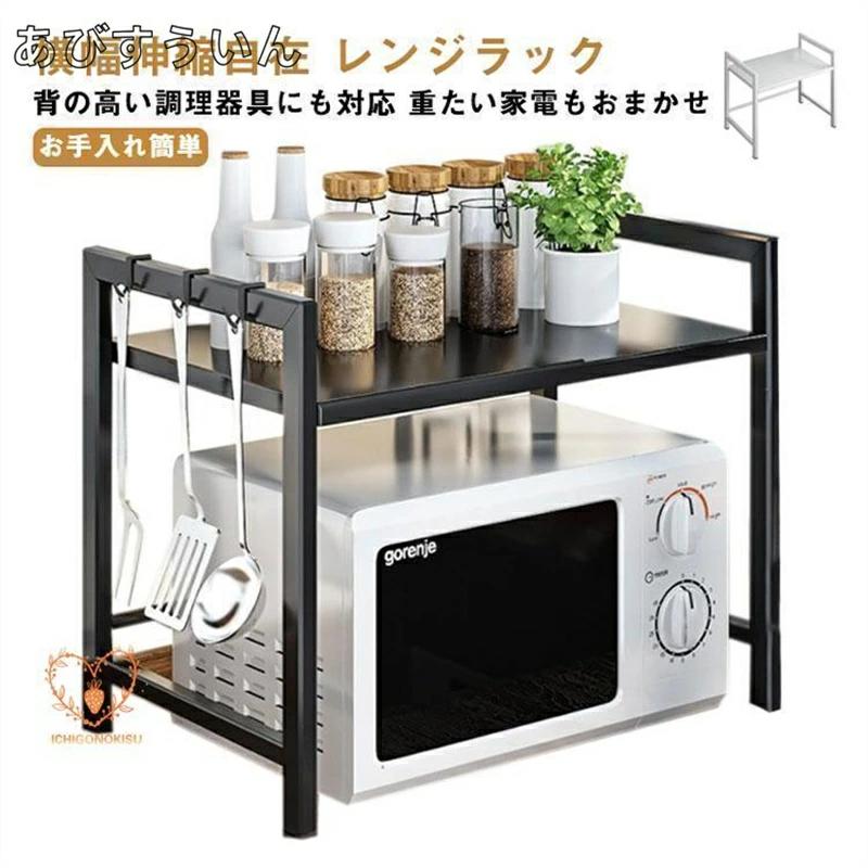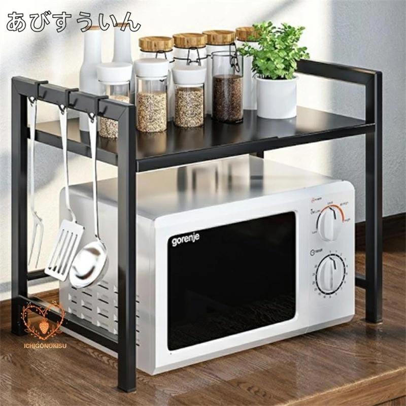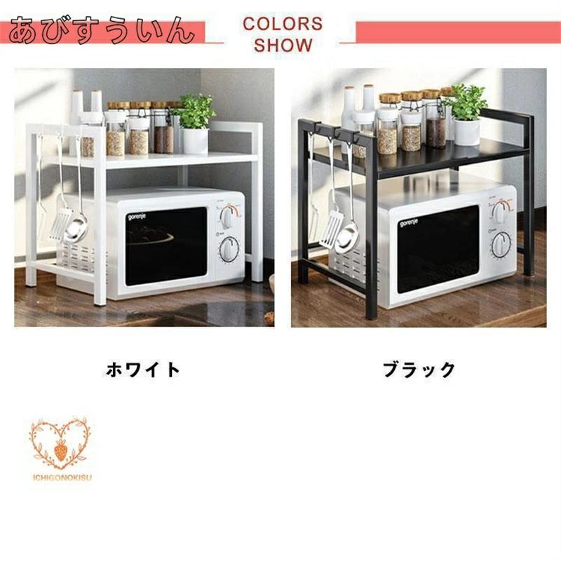 レンジ上ラック 1段 2段高さ調整 キ キッチン整理用品 整理ボックス 新作 ホワイト ブラック 1段フック6個付 2段フック6個付