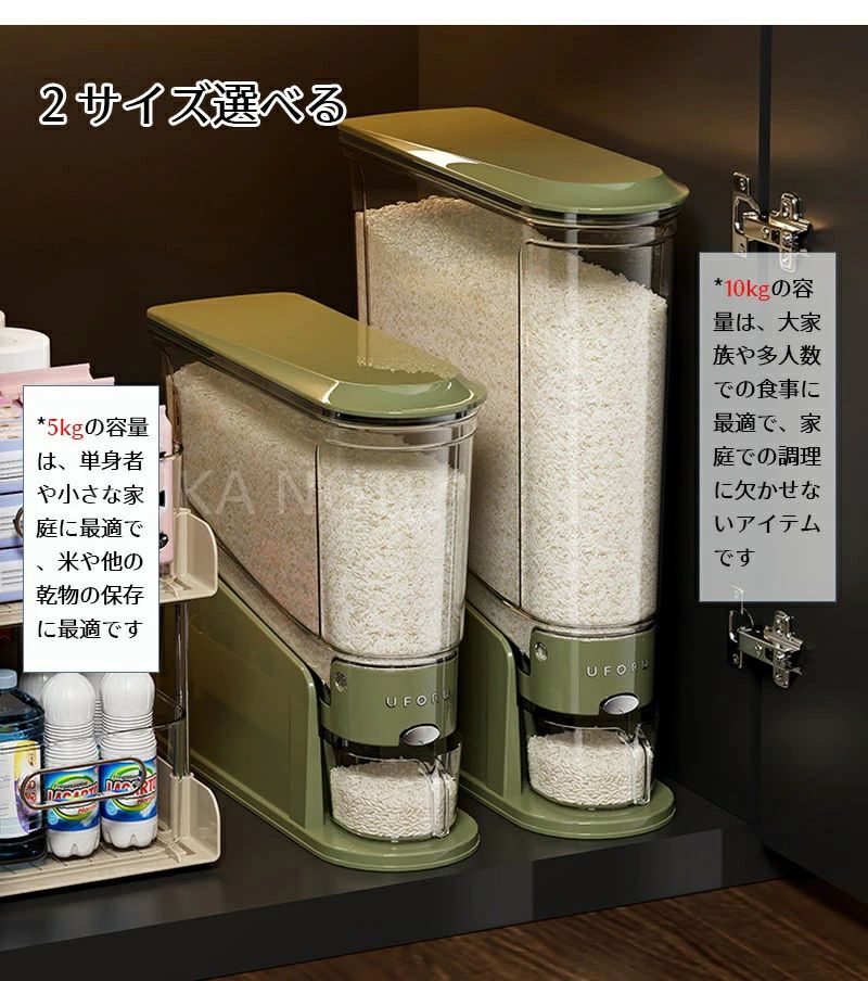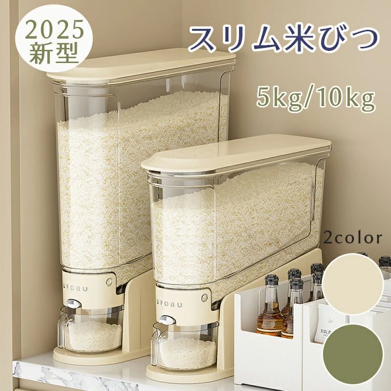 米びつ 2025新型 ライスストッカー 保存容器 調味料入れ 米びつ 通販 ベージュ グリーン 5kg 10kg