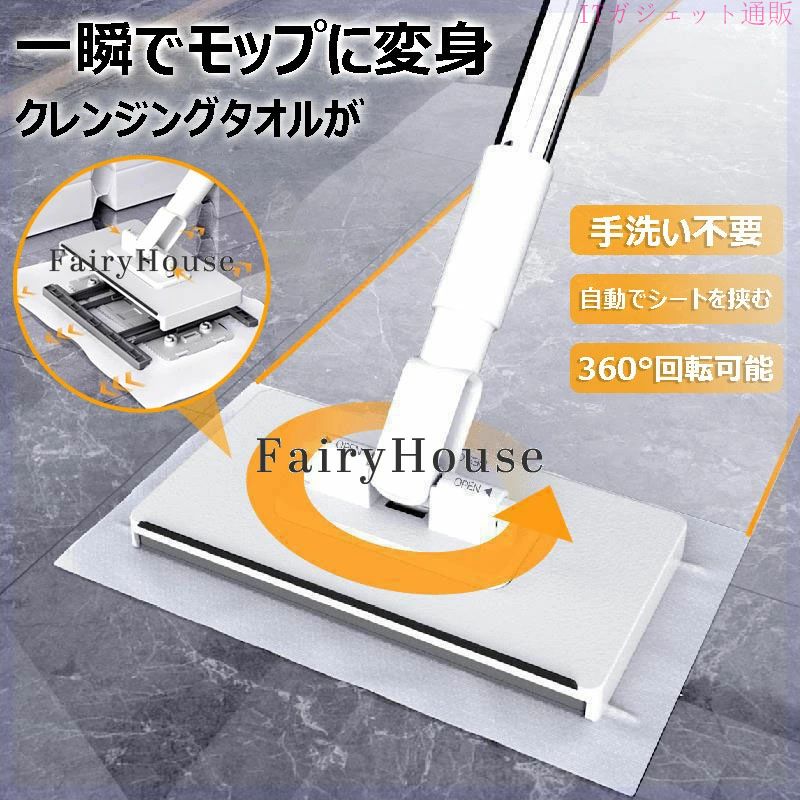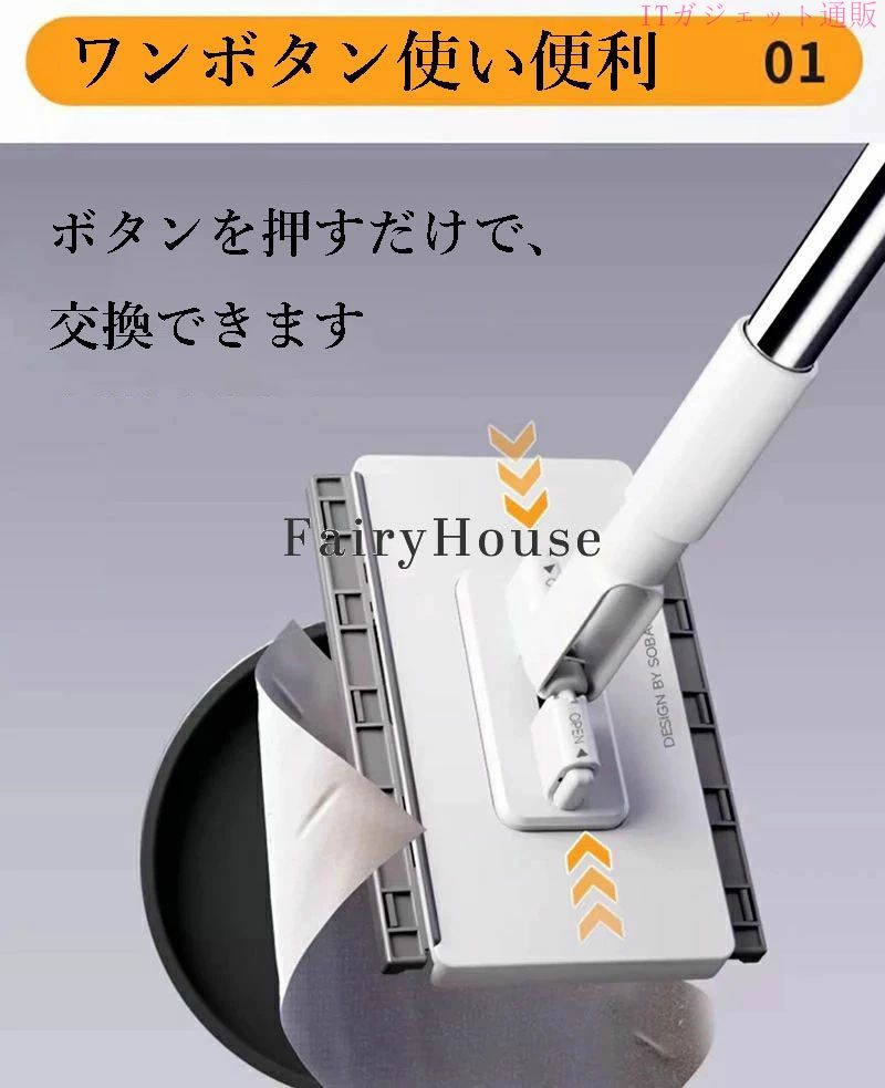 乾湿両用モップ 自動で雑巾を挟むモップ 掃除用品 モップ 特集 ホワイト【74cm】 ホワイト【95cm】