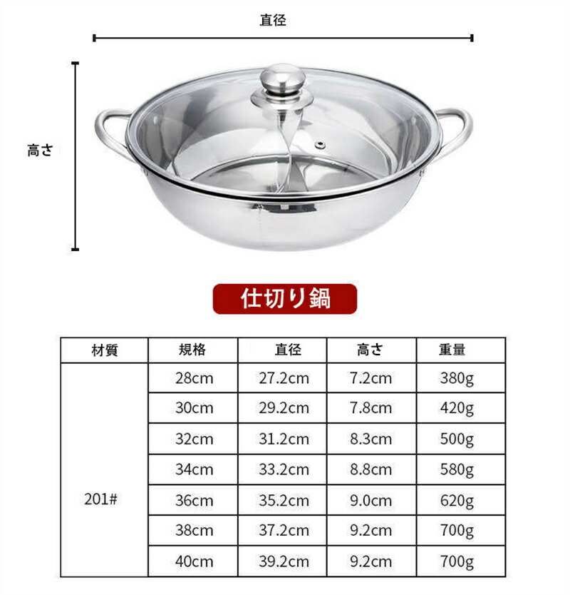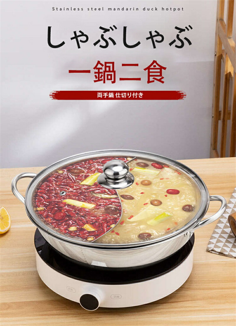 仕切り鍋 IH対応 二食鍋 火鍋 2食 28cm 30cm 32cm 34cm 36cm 38cm